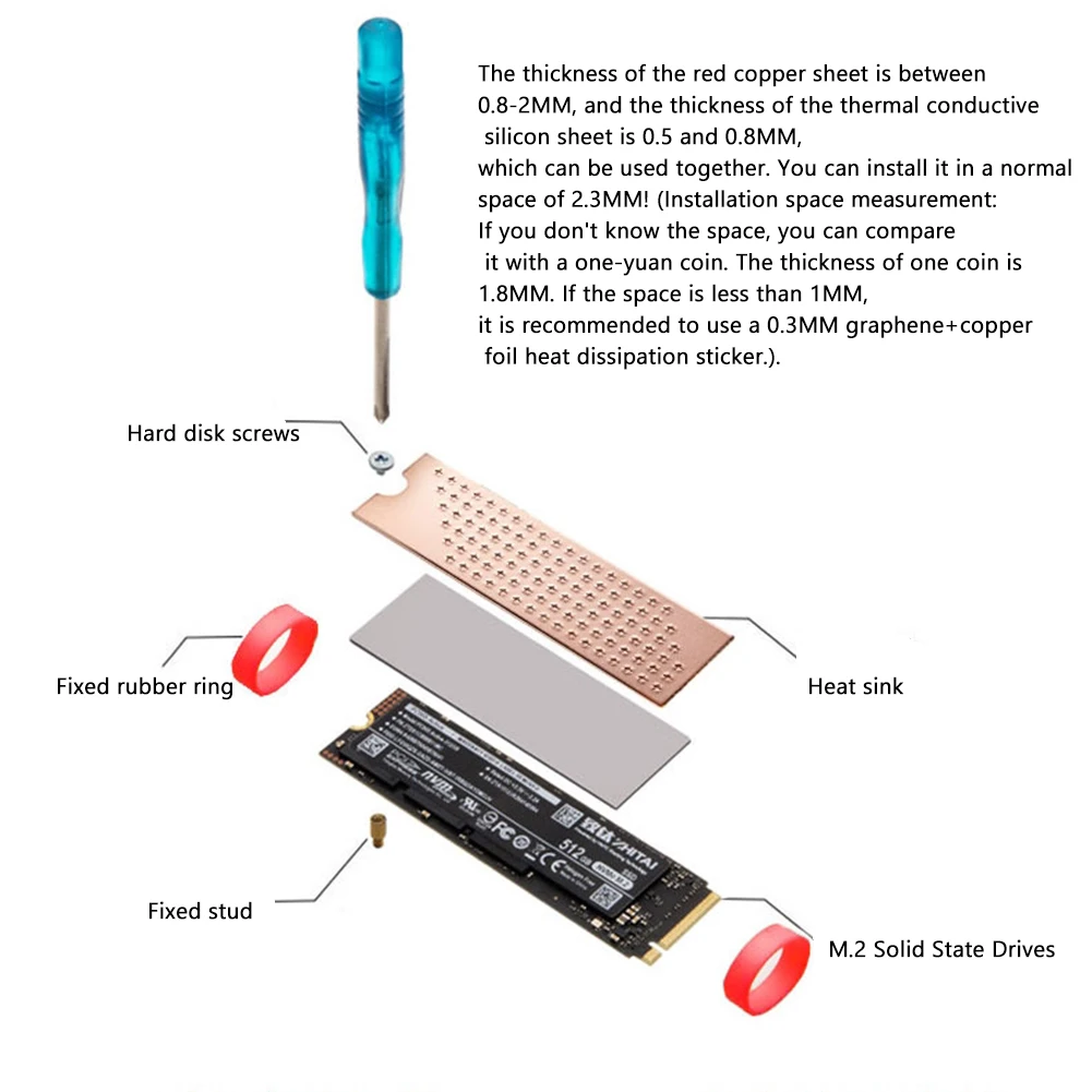 Enfriador de disco duro de estado sólido de cobre con almohadilla térmica de silicona, Enfriador de calor, radiador, portátil, escritorio, 0,8mm/1mm/2mm para SSD M.2 2280