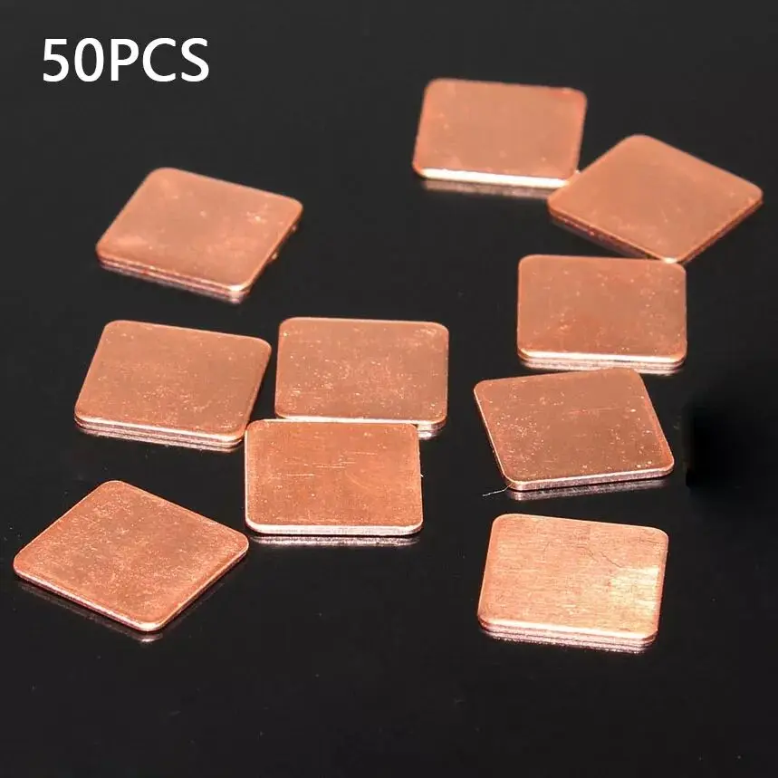 Comprar Disipador térmico de pasta para ordenador, refrigeración de cobre para tarjeta de vídeo, radiador VGA BGA, 15x15x0,1mm, 0,3mm, 0,5mm, 1,5mm, 50 unidades