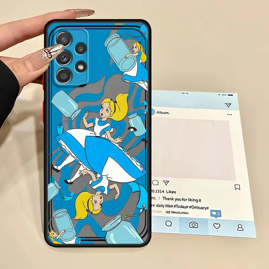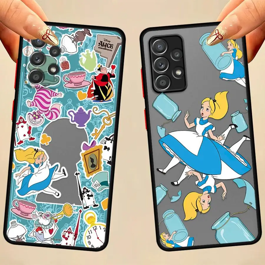 Comprar Disney Alicia en el país de las Maravillas- Funda para Samsung Galaxy A53 A56 A24 A54 A34 A22 A72 A52 A33 A32 A21s A23 A35 A25 A36 A26 Borde Negro