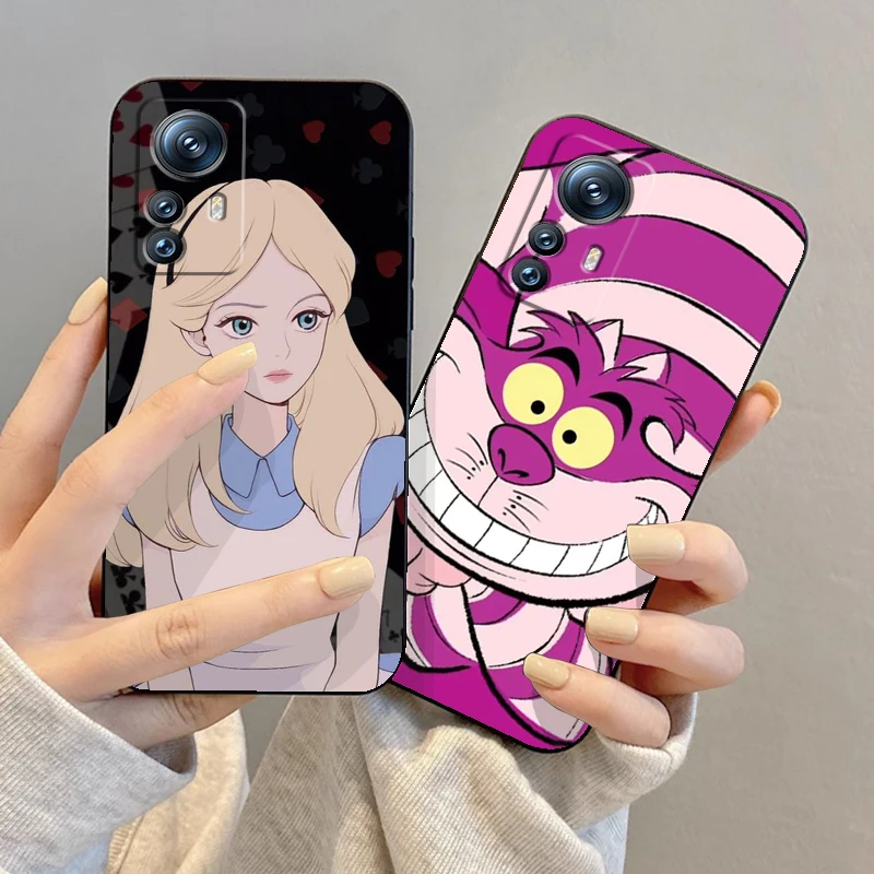 Disney Alicia en el país de las maravillas para Xiaomi Mi 14 13T 13 12T 12 11T 11i 11 10T 10 Pro Lite Ultra 5G, Funda negra para teléfono