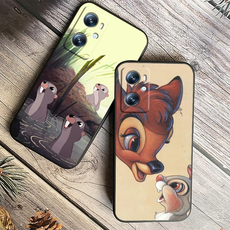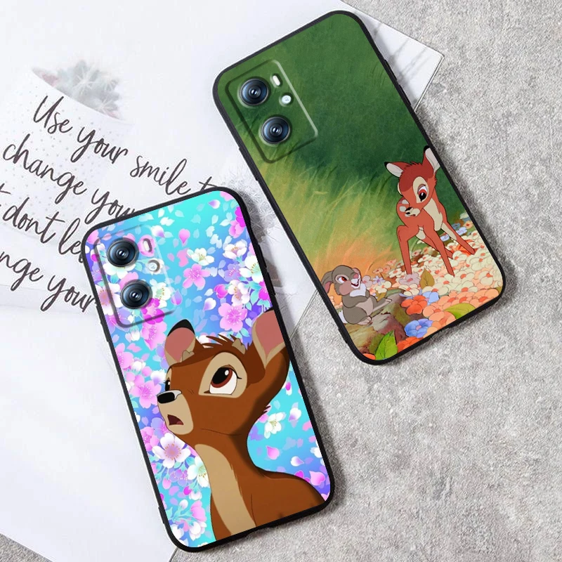 Disney Bambi Animation para OPPO Find X5 X3 X6 A54S A5 A94 A16 A53S A57 A74 A72 A98 A78 A96 A9 5G, funda negra de TPU para teléfono