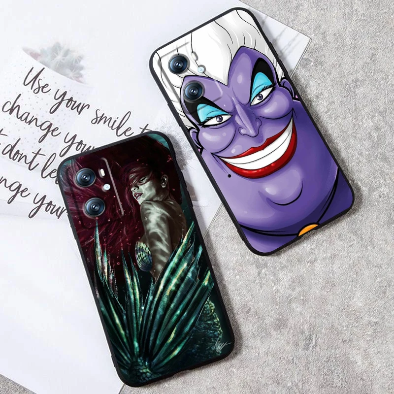 Comprar Disney-Funda negra de La Sirenita Ariel para OPPO Find X5 X3 X6 A54S A5 A94 A16 A53S A57 A74 A72 A98 A78 A96 A9 5G