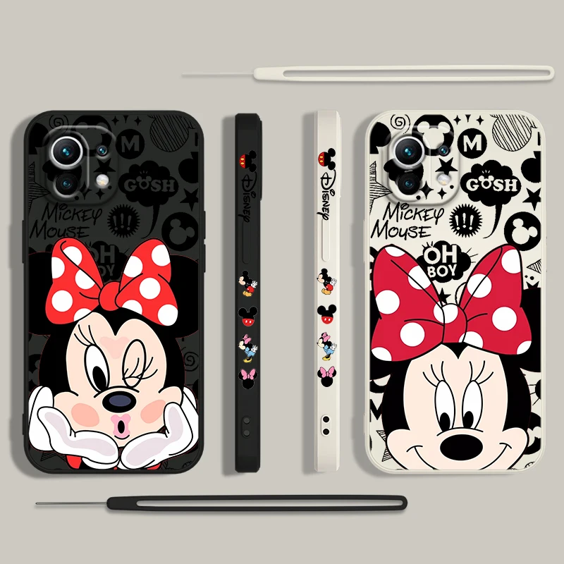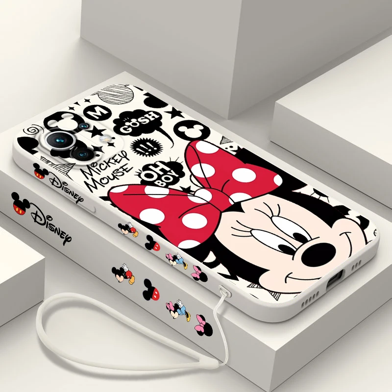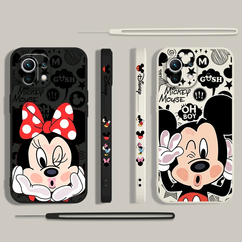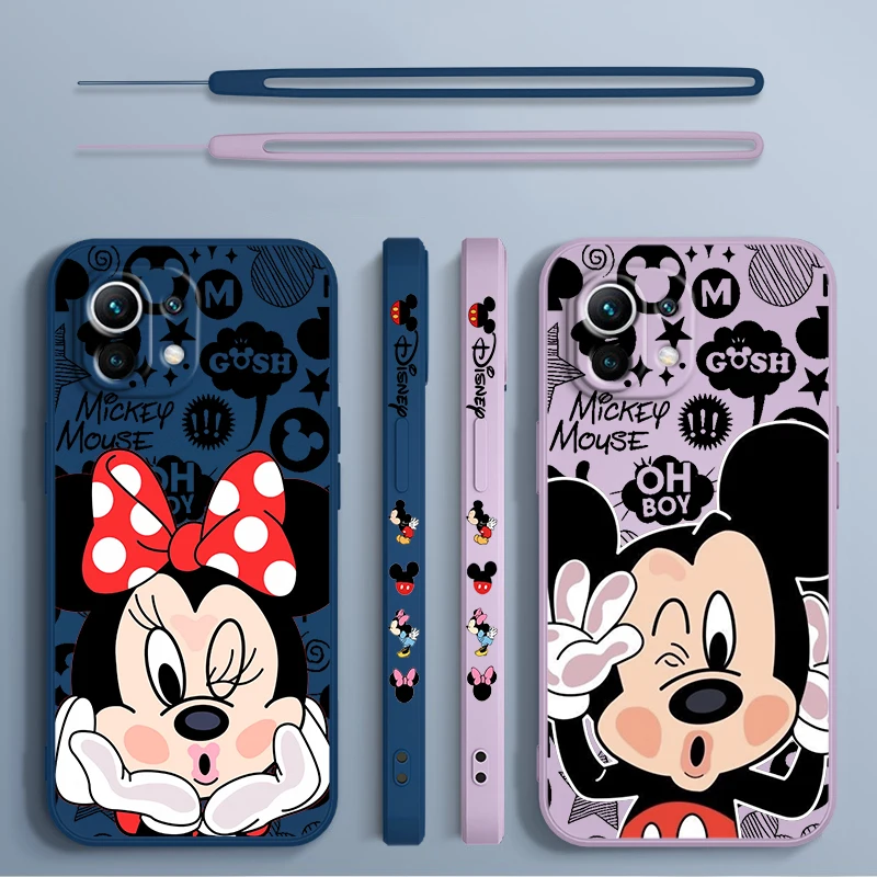 Comprar Disney funda de teléfono de Mickey Mouse para Xiaomi 14, 13, 12, 11, 10 T, Pro Ultra Lite, 5G, cuerda líquida izquierda, 5G, cubierta suave