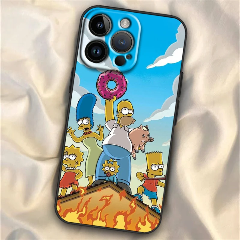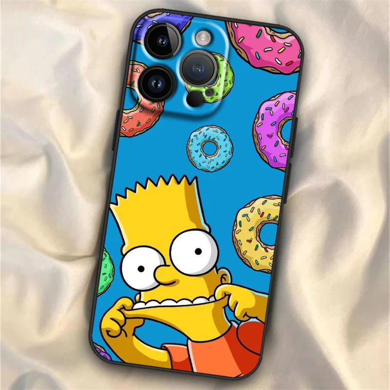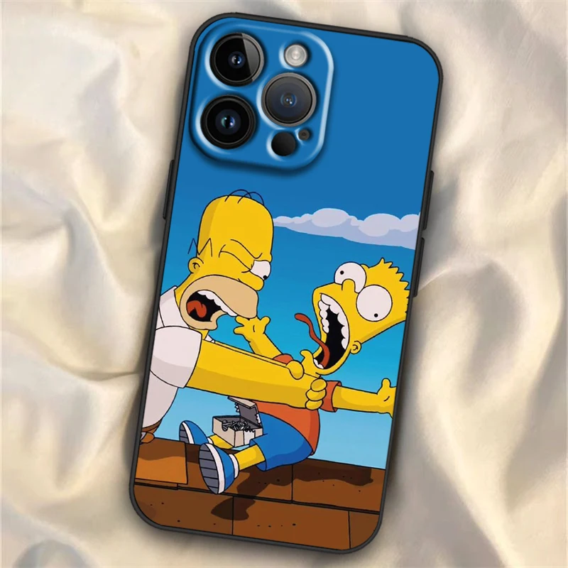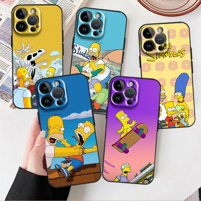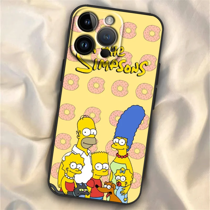 Disney-funda de TPU suave a prueba de golpes para iPhone, carcasa negra de dibujos animados de Los Simpsons para Apple iPhone 15 14 13 12 11 XS XR X Pro Max Plus Mini