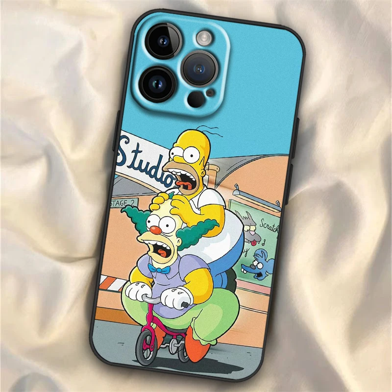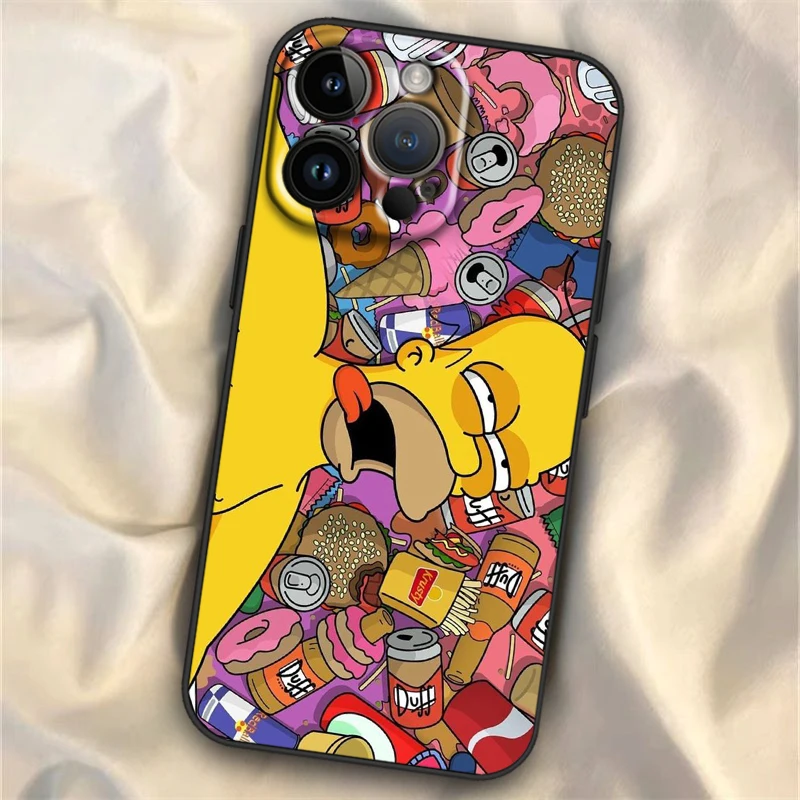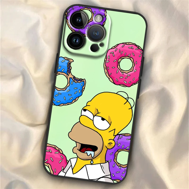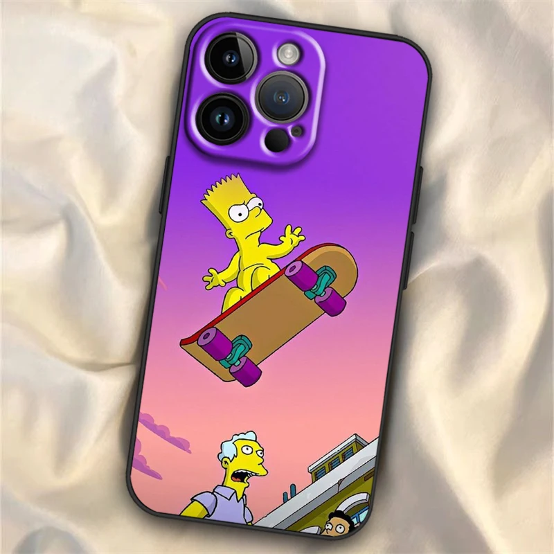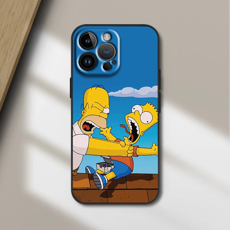 Disney-funda de TPU suave a prueba de golpes para iPhone, carcasa negra de dibujos animados de Los Simpsons para Apple iPhone 15 14 13 12 11 XS XR X Pro Max Plus Mini