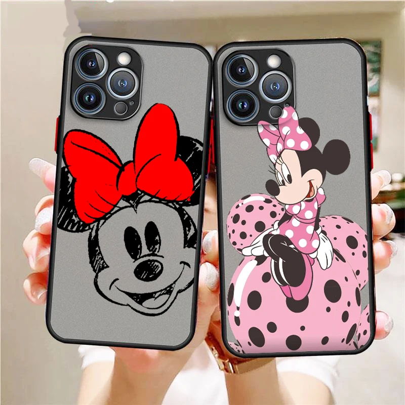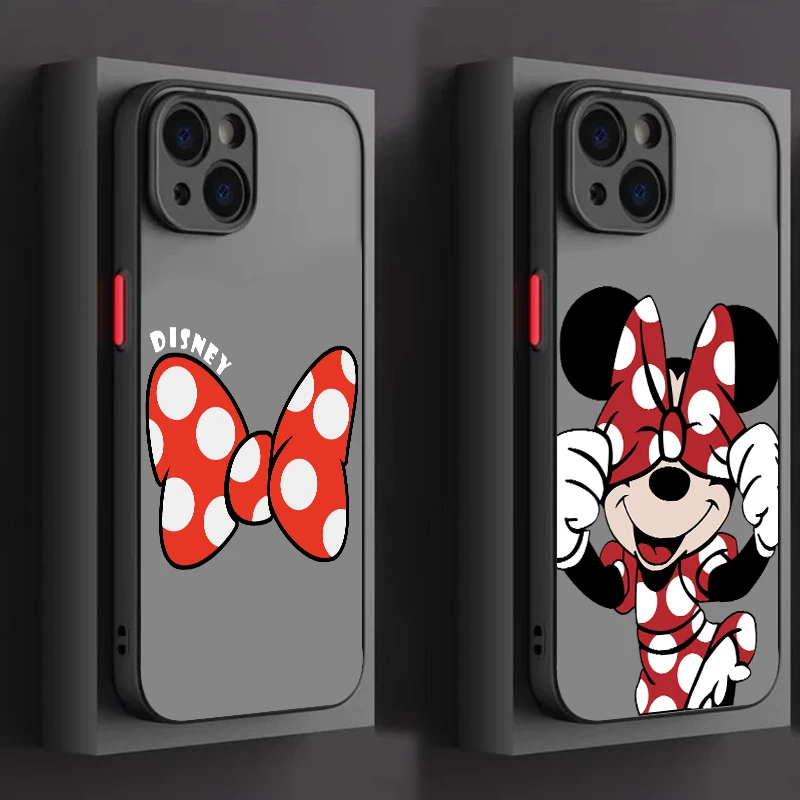 Disney-funda trasera de Minnie Mouse para iPhone, carcasa translúcida de color rojo esmerilado para iPhone 16, 15, 14, 13, 12, 11, XS, XR, X Pro Max Plus Mini