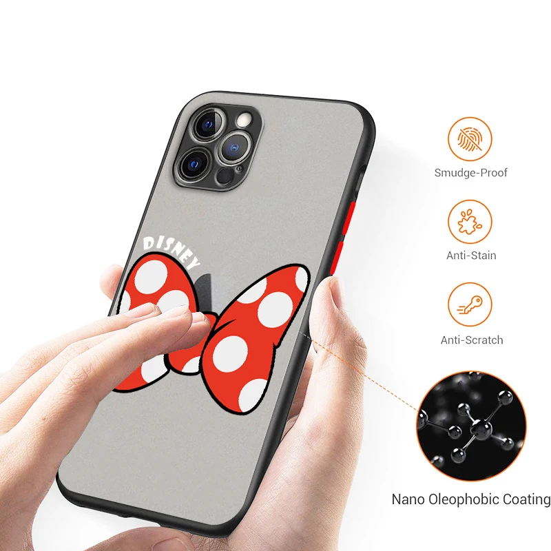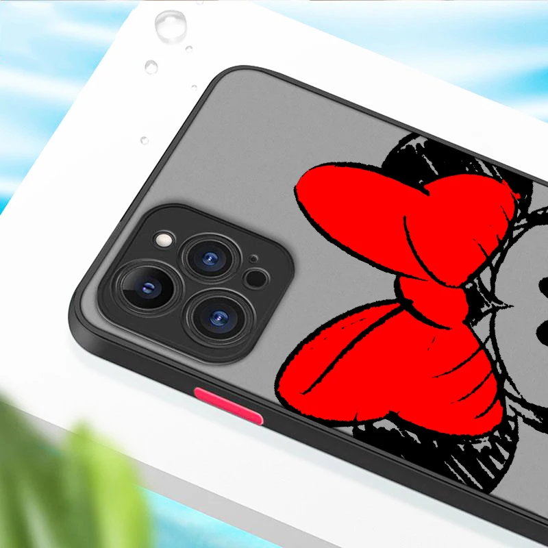 Comprar Disney-funda trasera de Minnie Mouse para iPhone, carcasa translúcida de color rojo esmerilado para iPhone 16, 15, 14, 13, 12, 11, XS, XR, X Pro Max Plus Mini