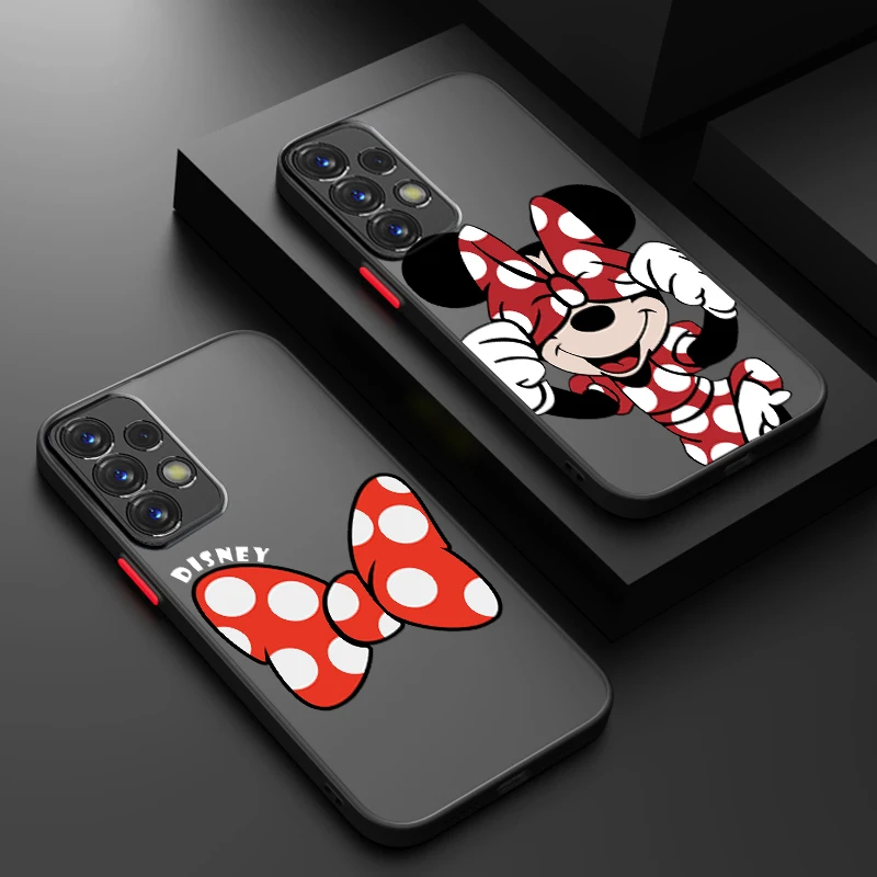 Disney funda trasera de Minnie Mouse translúcida para teléfono Samsung, carcasa trasera de Minnie Mouse rojo esmerilado para Samsung A53, A52, A33, A32, A51, A71, A21S, A13, A73, A50, A22, A12, 5G