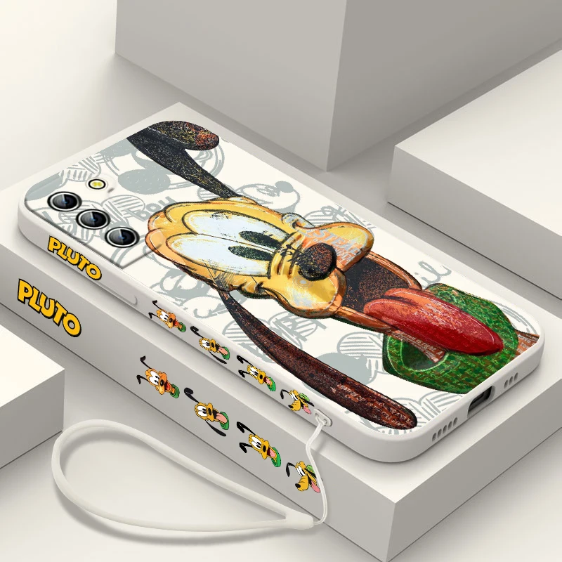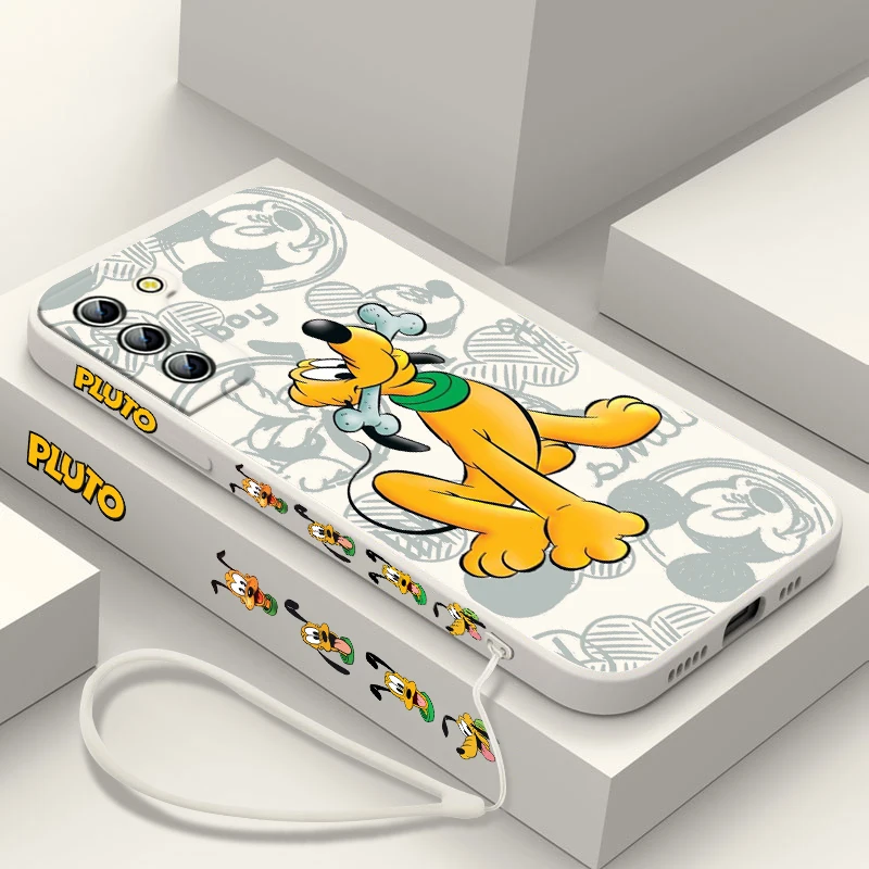 Comprar Disney Mickey's Dog Plutón para Samsung Galaxy S24 S23 S22 S21 S20 Pro FE Plus Ultra líquido cuerda izquierda funda de teléfono 5G