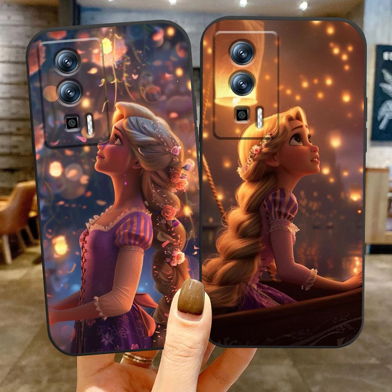 Disney Rapunzel Princess para Xiaomi Redmi 9A 9C 9AT 10C 9 9T 10 12C 13C A3 12 K60 A1 K50 K40 5G, funda trasera negra