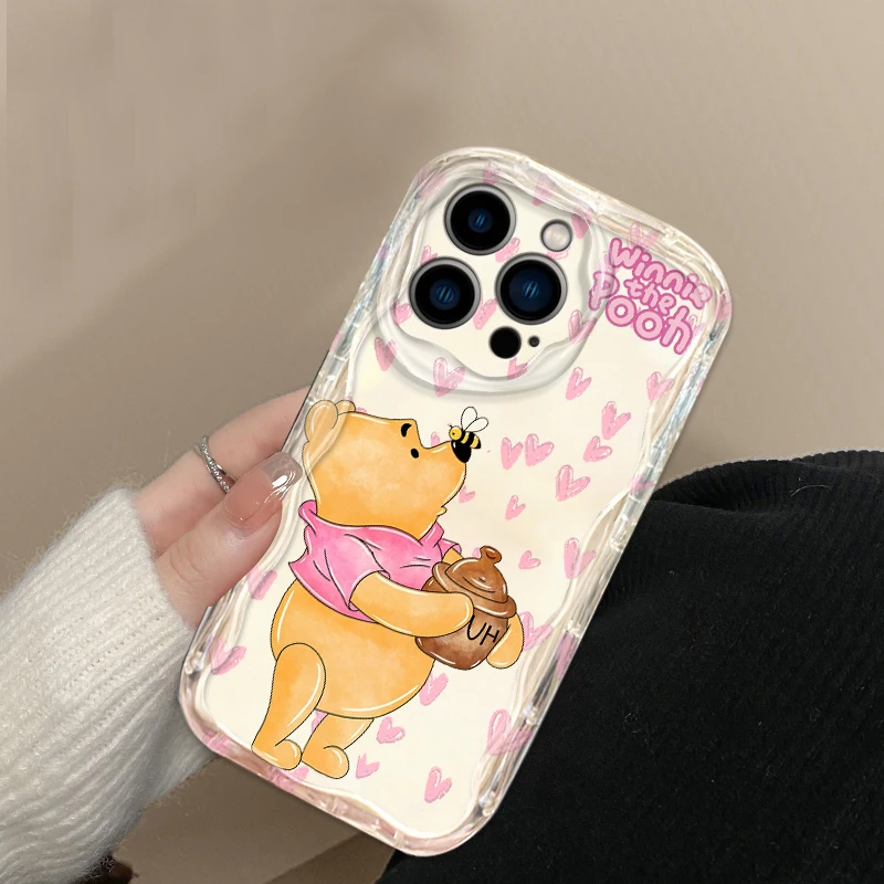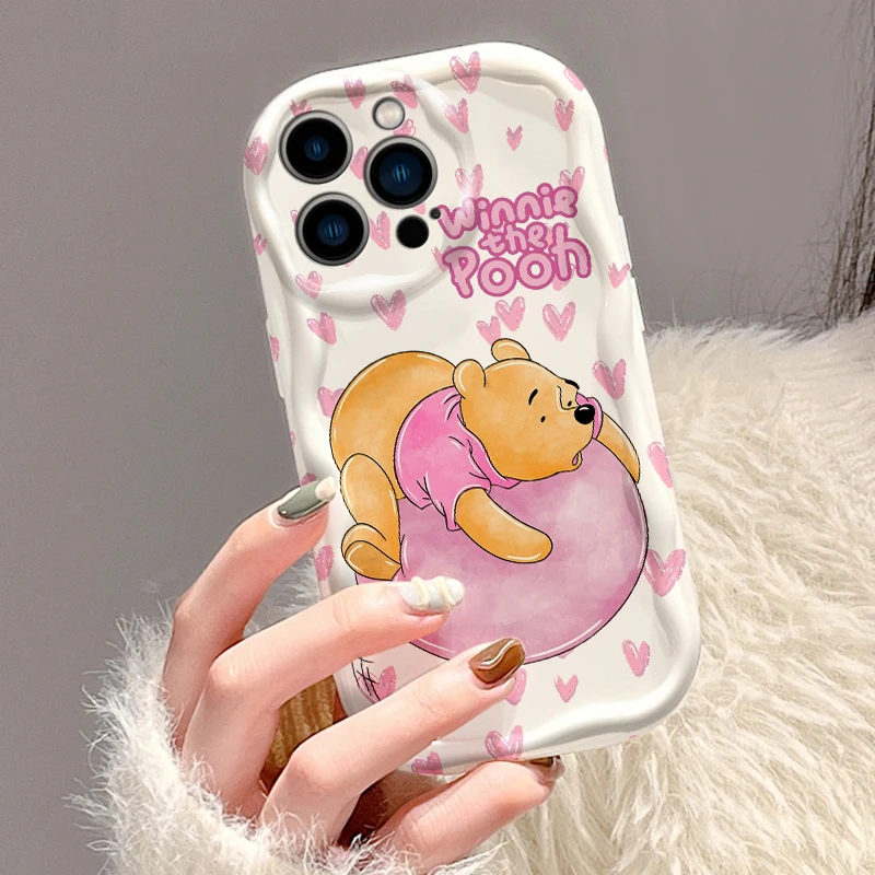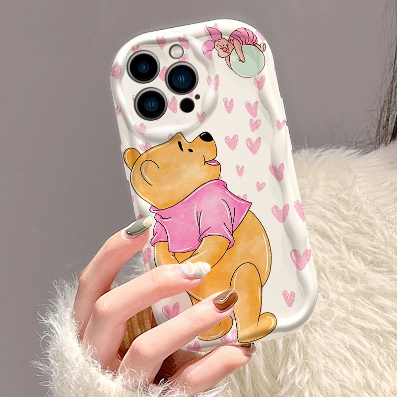 Disneys Winnies The Poohs 3D Wave funda para iPhone 16 15 14 13 12 11 Pro Max Mini X XR XSMAX 8 7 6S Plus funda de silicona suave