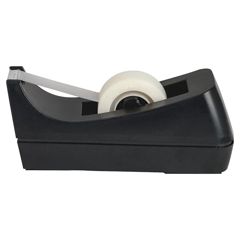 Tamaño adecuado para su uso: el dispensador de escritorio con cinta mide aproximadamente 6x1.9 pulgadas, compacto y no ocupará mucho espacio en su escritorio;La cinta mide aproximadamente 0.7 pulgadas/18 mm de ancho, aproximadamente 985 pulgadas/25 metros de largo, tiene buena adherencia, adecuado para papel, libros, cartón, etc.
