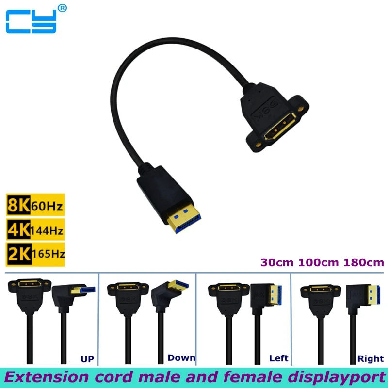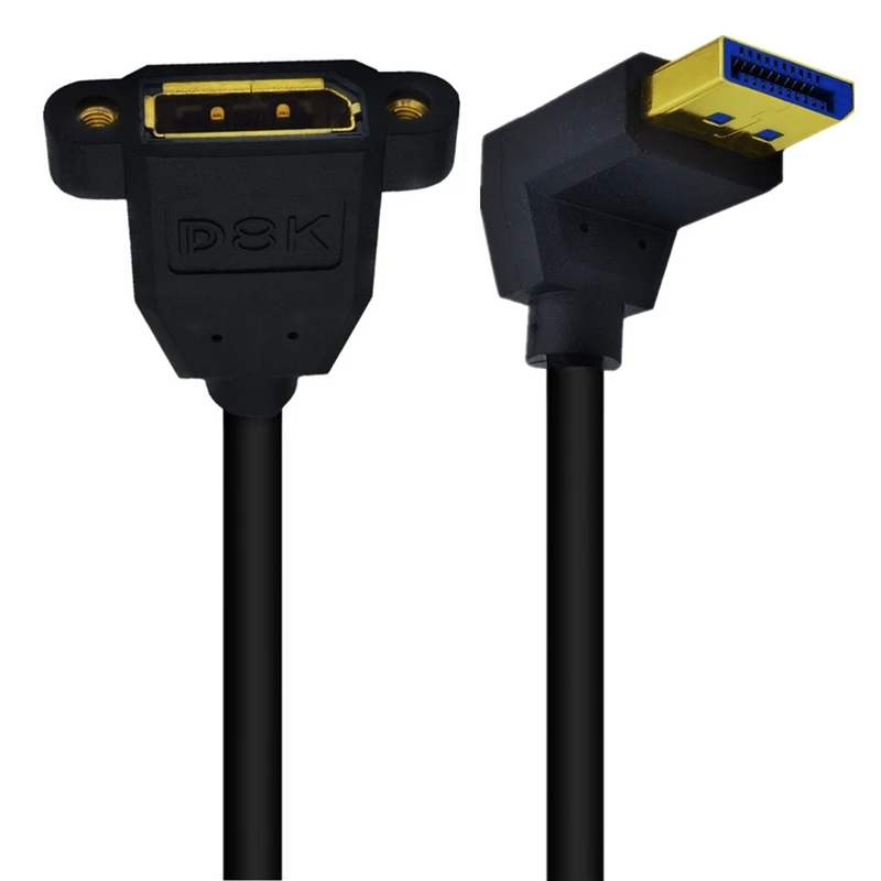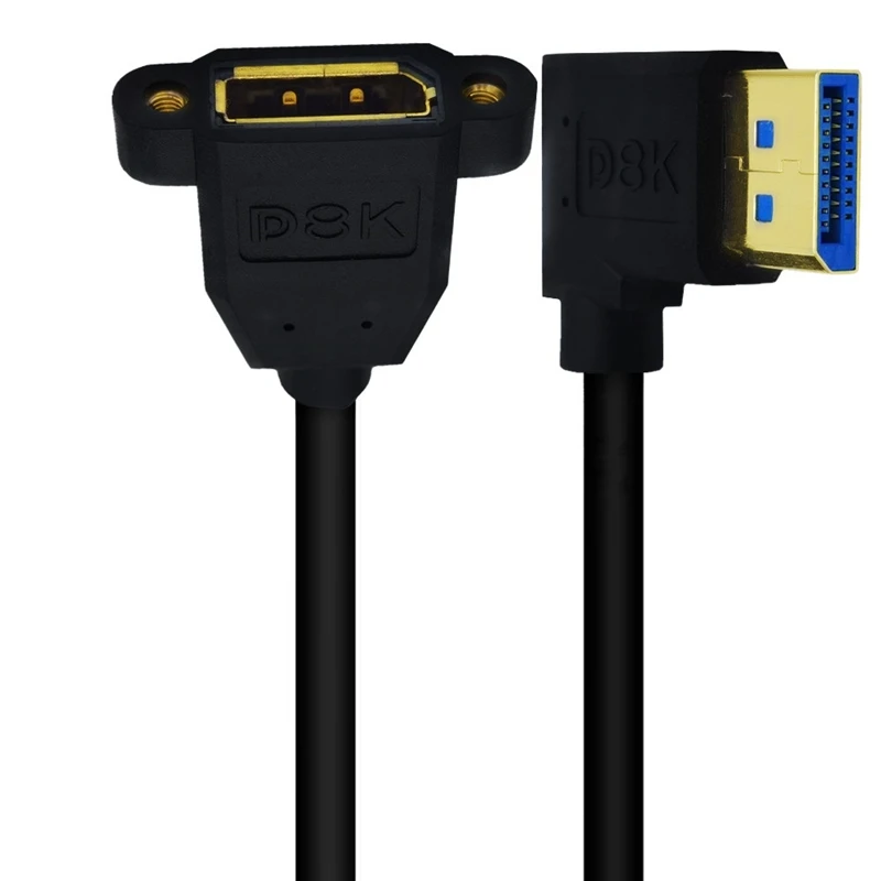 Comprar DisplayPort-Cable de montaje en Panel de extensión macho a hembra, Cable de vídeo de alta definición, 1,4 m, 0,3 m, 90 grados, 8K @ 60Hz DP, versión 1,8