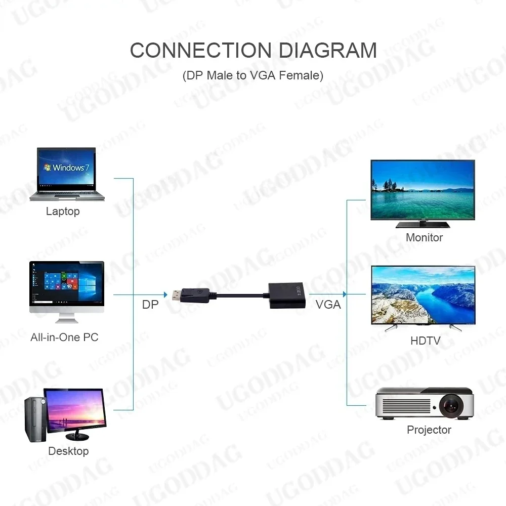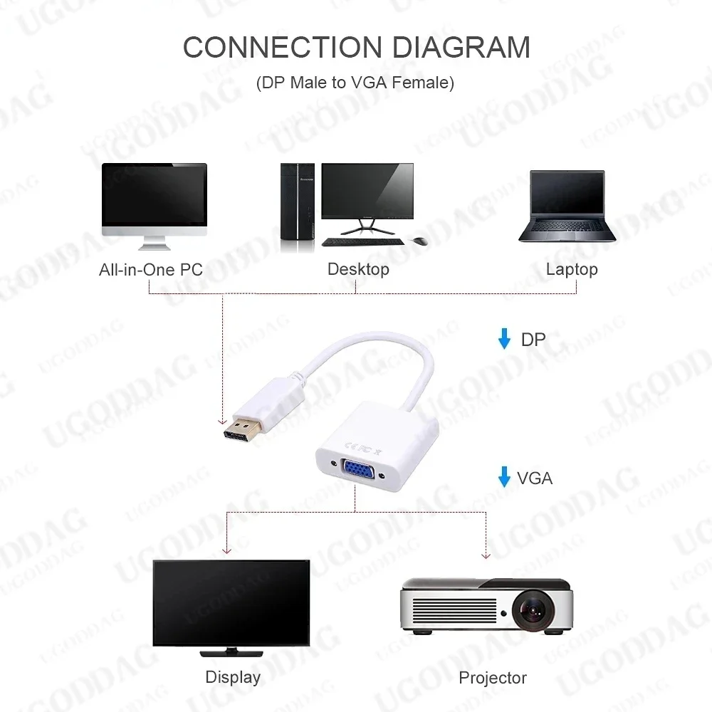 Comprar DisplayPort Display Port DP a VGA/HDTV/DVI Cable adaptador convertidor macho a hembra para PC ordenador portátil Monitor proyector