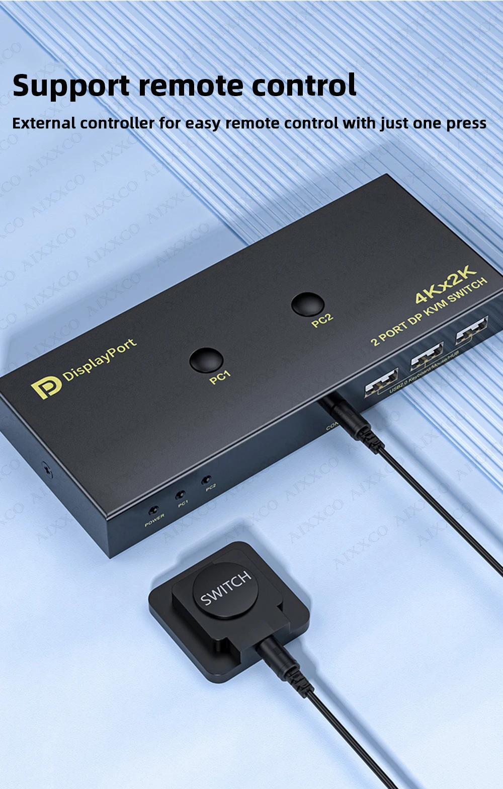 Este es un conmutador de 2 ordenadores con interfaz DP ultra HD. Puede cambiar y controlar 2 ordenadores libremente con un conjunto de teclado y ratón. También puede compartir 3 periféricos USB, como disco U, impresora, disco duro móvil, etc. Es fácil de operar y fácil de usar. Ampliamente utilizado en diseño de oficina y monitoreo de seguridad y otros campos. Es un buen ayudante para su trabajo y su vida.