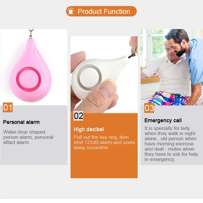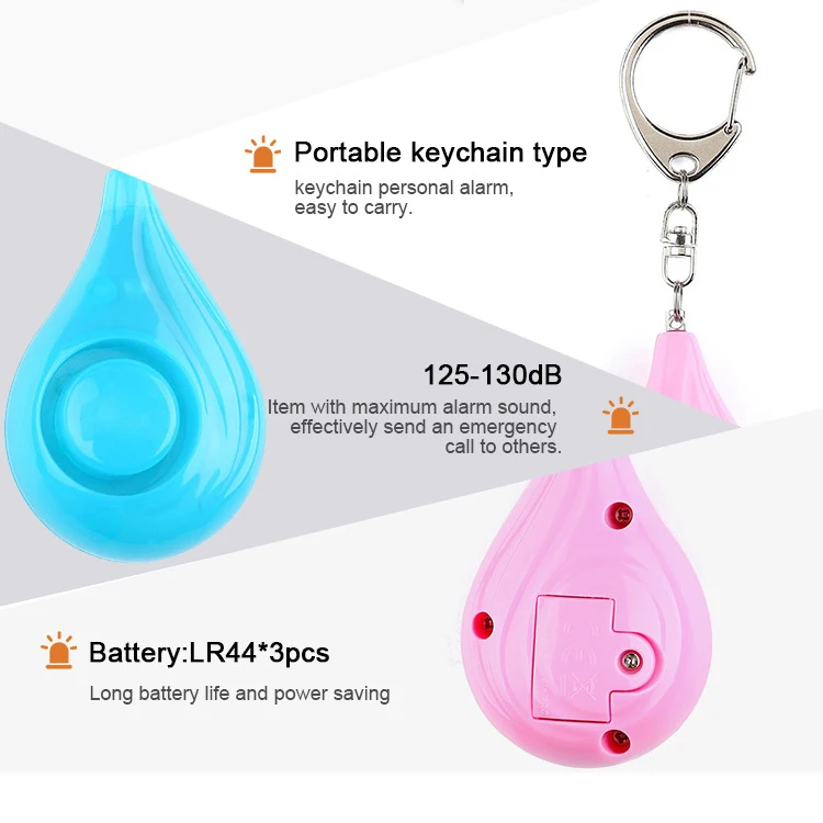 1. La nueva alarma creativa en forma de gota de agua es adecuada para personas mayores, niños y uso al aire libre. No solo para las mujeres, esta alarma también puede proteger los monederos, teléfonos móviles y objetos de valor de perderse, ser robados y robados. Su uso es adecuado para cada persona.