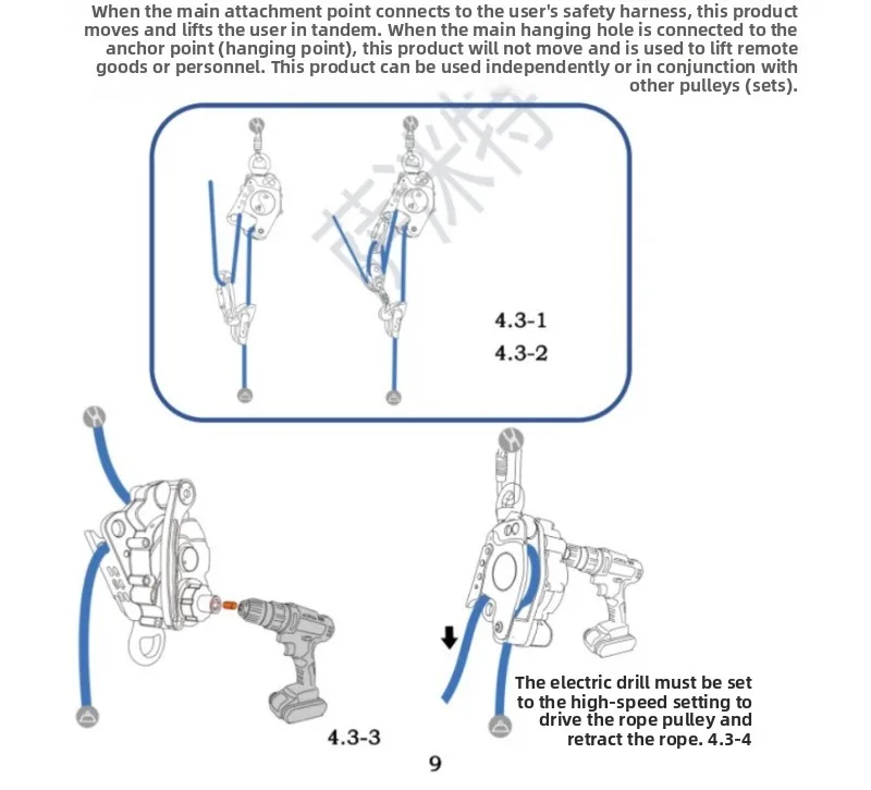 Dispositivo de elevación/abajo accionado por taladro Ascender AWAH Z3-FIRE WK-01 Dispositivo de descenso de ascenso para rescate de cuerda y actividades al aire libre