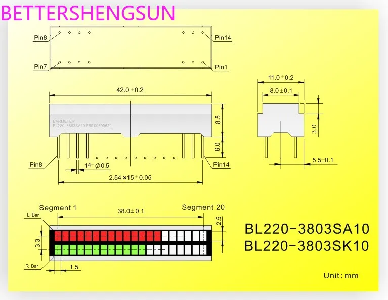 Comprar Dispositivo de pilar de luz LED, 40 segmentos, 38mm de largo, amarillo, verde, BL220-3803S, venta directa de fábrica