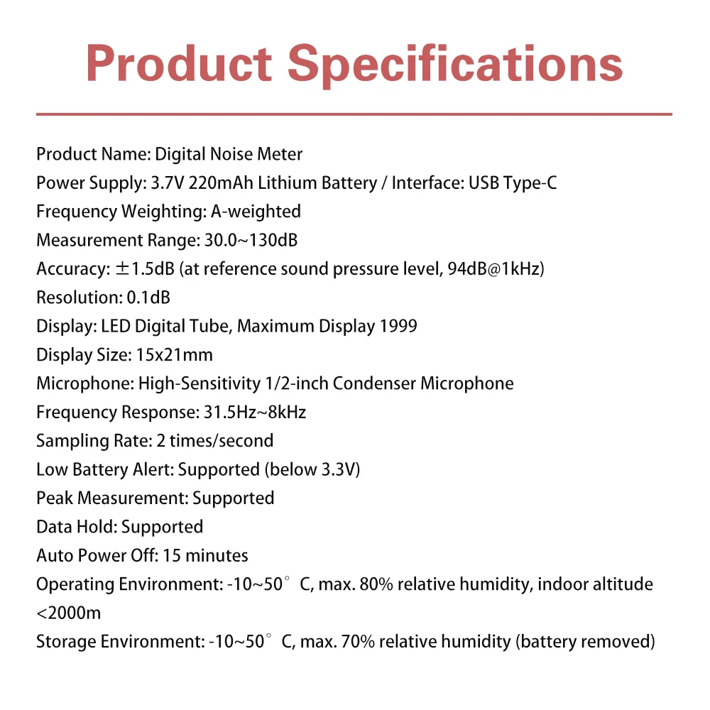 3.Amplio rango de medición de 30,0 ~ 130 dB para satisfacer diversas necesidades de detección de ruido