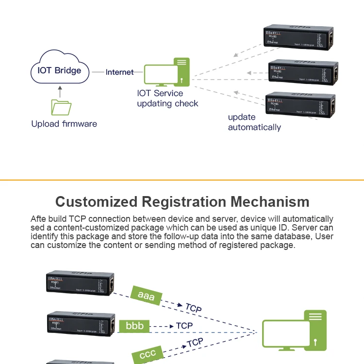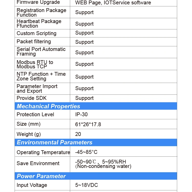 La serie admite RS485 a Ethernet, la unidad es una solución completa para la conexión de dispositivos de puerto serie a la red. Este potente dispositivo admite un sistema operativo confiable y probado almacenado en memoria flash, un servidor web integrado, una pila de protocolo TCP/IP completa y cifrado basado en estándares (AES).