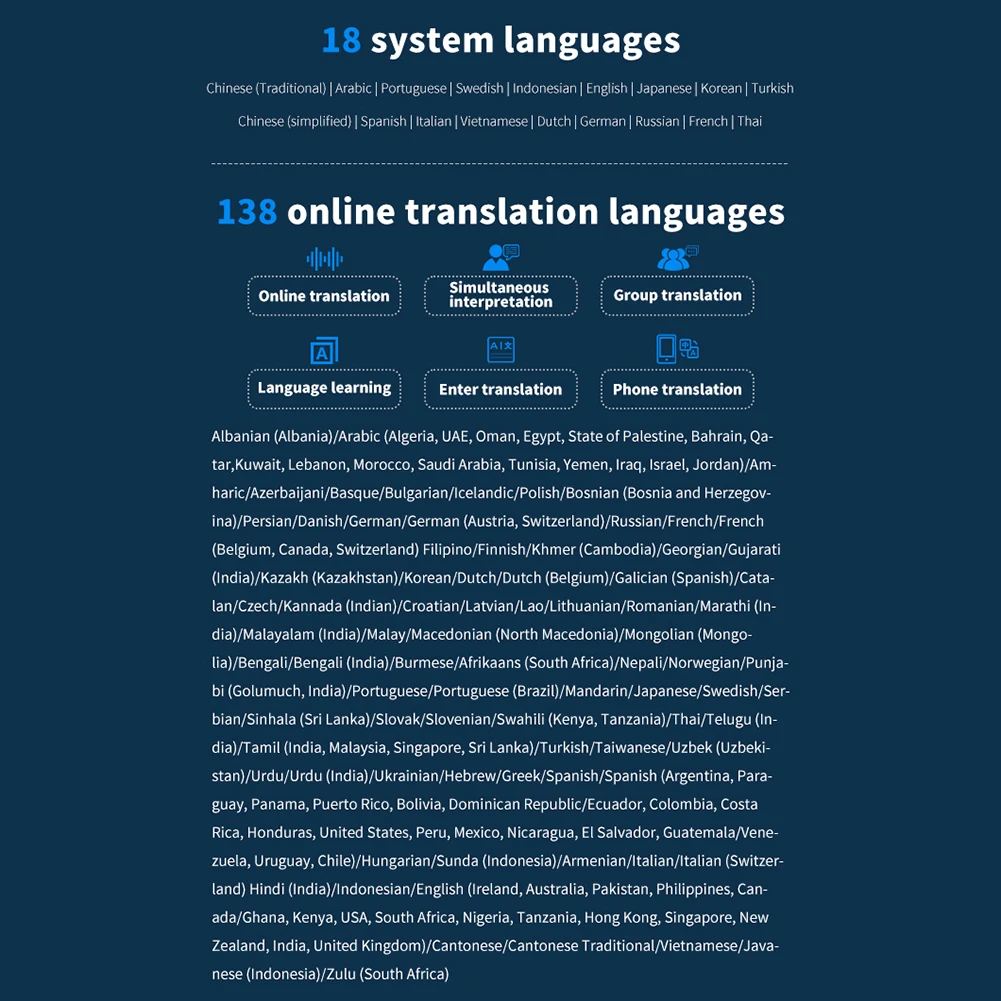 Traducción móvil: 138 tipos