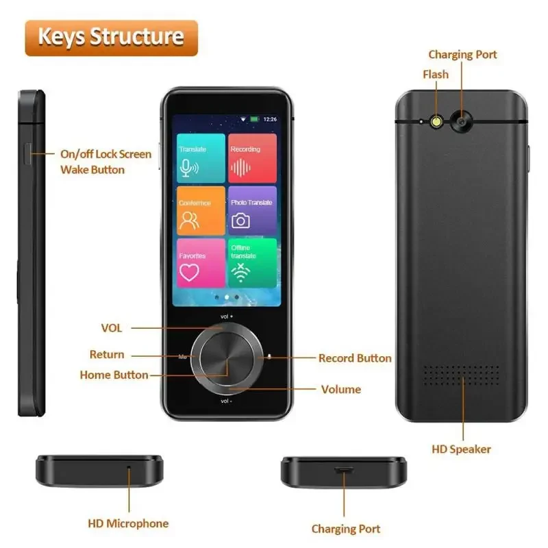 - Dispositivo de traducción de voz y texto en tiempo real: con 5 millones de píxeles y cámara OCR (reconocimiento de caracteres),3.Pantalla táctil de alta definición de 0 pulgadas, cuando convierte voz a través de audio, el dispositivo traductor de voz puede convertirla en texto en la pantalla.El tiempo de respuesta del traductor de voz instantáneo es inferior a 0,5 segundos (más rápido que el traductor humano).