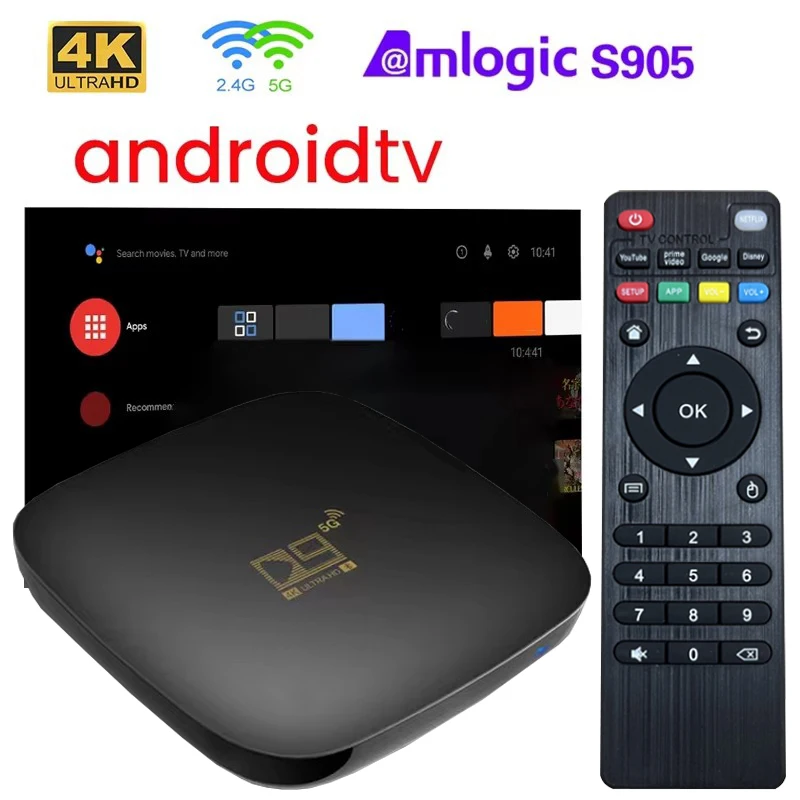 Comprar Dispositivo de TV inteligente D9, decodificador con Android 10, Amlogic S905L2, cuatro núcleos, ARM Cortex-A53, BT4.1, Wifi Dual, 4G, 5G, 100LAN, compatible con vídeo 4K, reproductor multimedia 3D, iptv