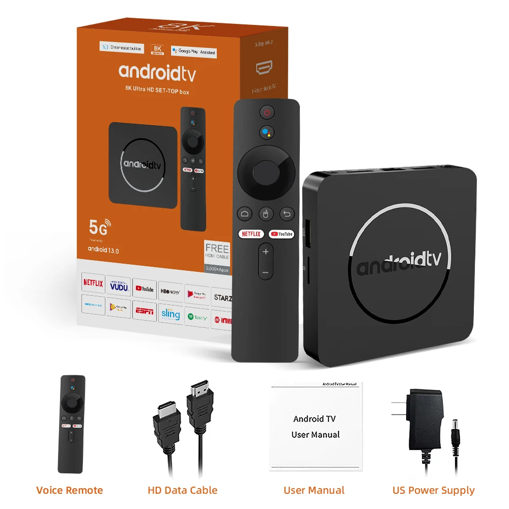 Funciones ricas, aplicaciones multifacéticas: se ejecuta en el sistema operativo Android TV 13,0, compatible con una gran cantidad de aplicaciones y juegos, satisfaciendo sus diversas necesidades de entretenimiento. Admite WiFi de doble banda 2,4G /5G, conexión de red estable, admite Bluetooth 5,2, puede conectar periféricos.
