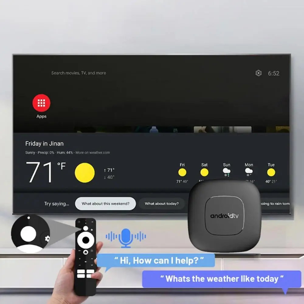 3. Múltiples funciones: Disfrute de un acceso a Internet sin problemas y conéctese fácilmente a una variedad de dispositivos con nuestra Smart TV Box. Navegue por el contenido sin esfuerzo con un control remoto activado por voz y amplias opciones de conectividad