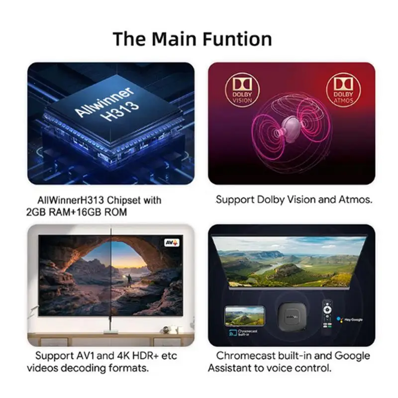 3. Múltiples funciones: Disfrute de un acceso a Internet sin problemas y conéctese fácilmente a una variedad de dispositivos con nuestra Smart TV Box. Navegue por el contenido sin esfuerzo con un control remoto activado por voz y amplias opciones de conectividad