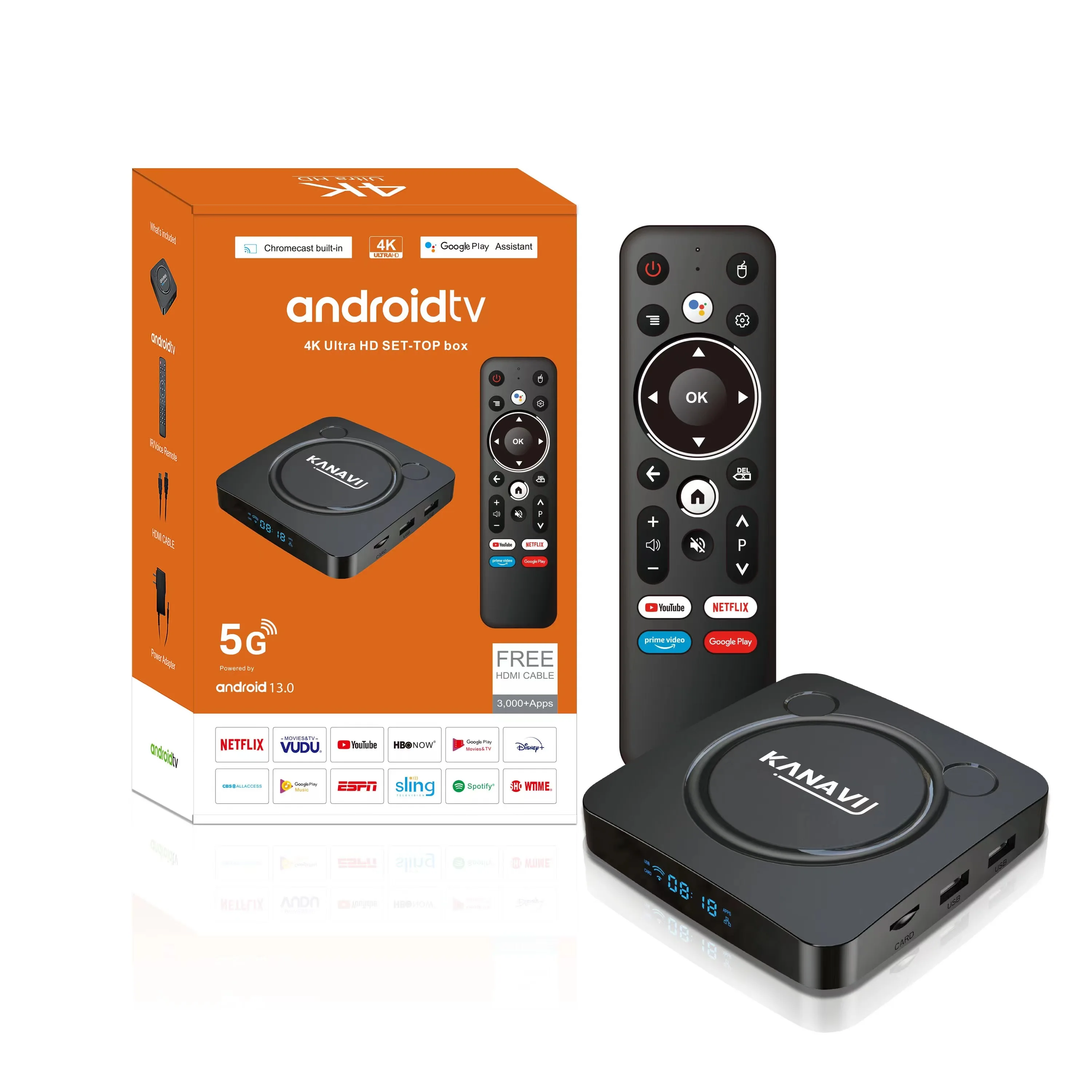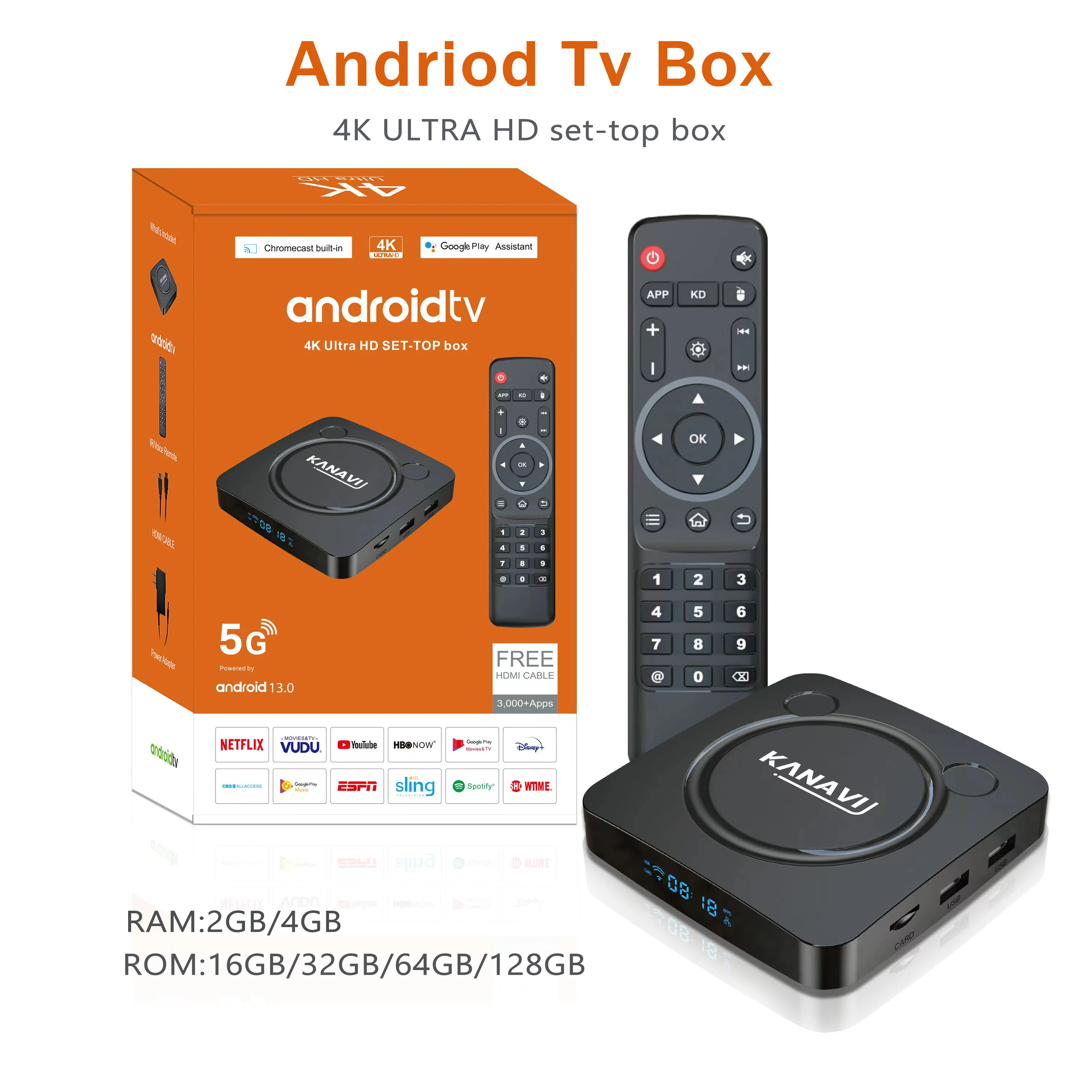 Comprar Dispositivo de TV inteligente KANAVI, decodificador con Android 13, cuatro núcleos, A53 Cortex, compatible con vídeo 4K, HDR10, WiFi Dual, 5G, control por voz, 16 GB, 32 GB, 64 GB, 128 GB