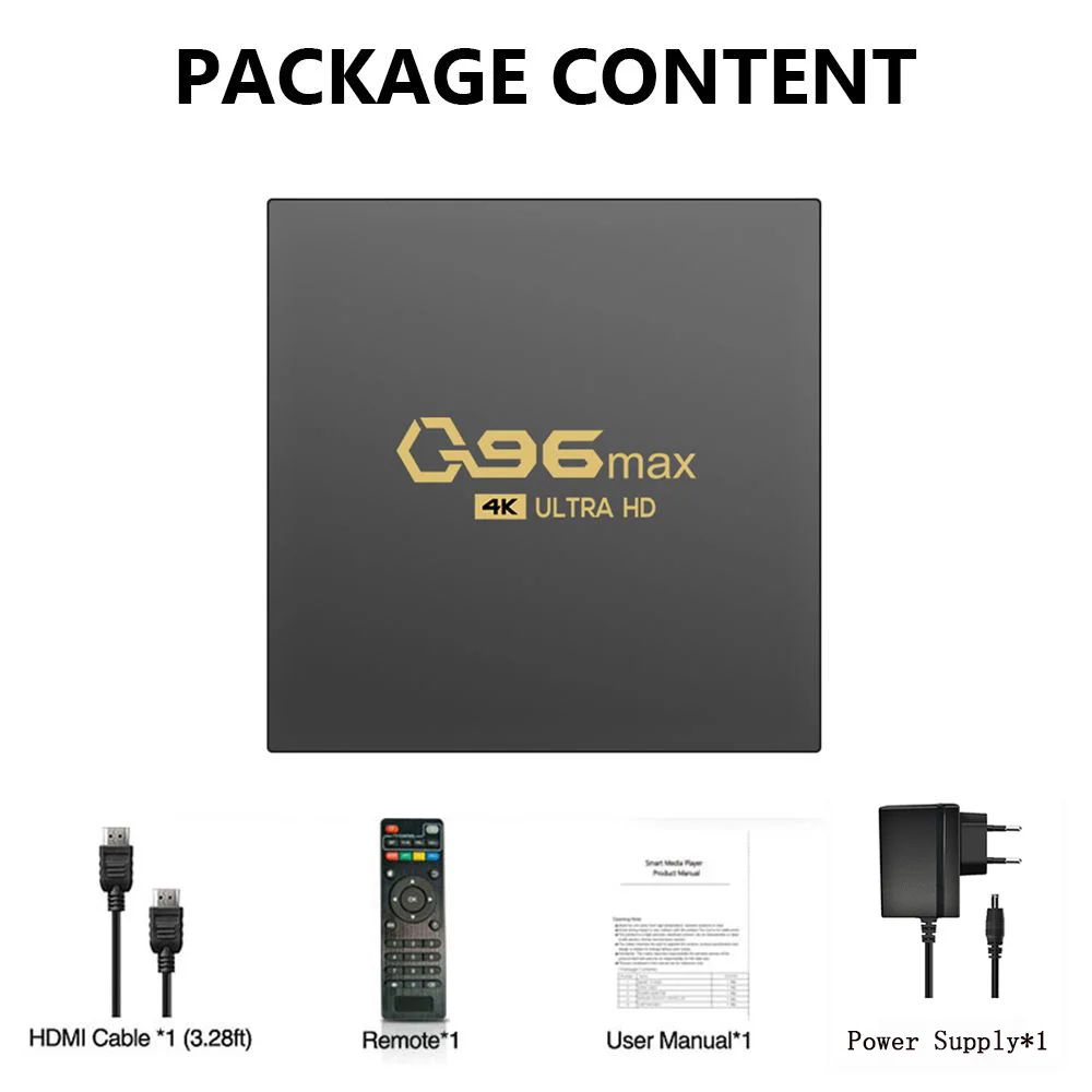Comprar Dispositivo de TV inteligente Q96 MAX, decodificador con Android 11, Amlogic S905L, cuatro núcleos, WIFI 4G, reproductor multimedia 4K Iptv para cine en casa, 265