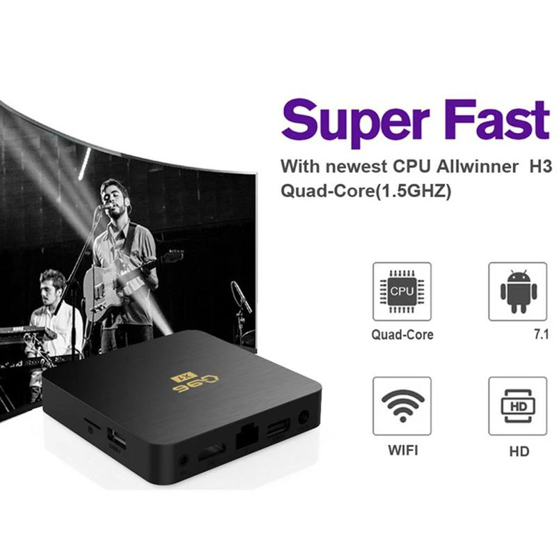 Comprar Dispositivo de TV inteligente Q96 X1, decodificador con Android 7,1, Allwinner H3, cuatro núcleos, WIFI 2,4G, 4K, 16GB/256GB, reproductor multimedia, H.265