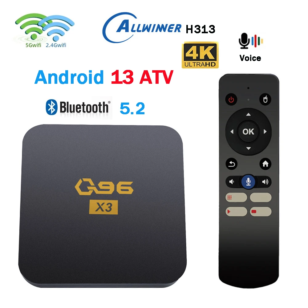 Comprar Dispositivo de TV inteligente Q96 X3 ATV, decodificador con Android 13, Allwinner H313, cuatro núcleos, 4K, HD, 2GB, 8GB, BT5.2, WIFI, 4G, 5G, reproductor remoto por voz