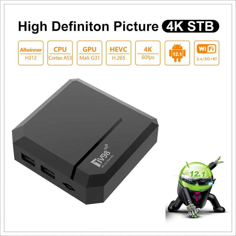 Comprar Dispositivo de TV inteligente TV98 BT, decodificador con Android 12, H313, cuatro núcleos, 2GB, 16GB, Wifi Dual, 4G, 5G, TB, reproductor multimedia 4,0, HD, 4K