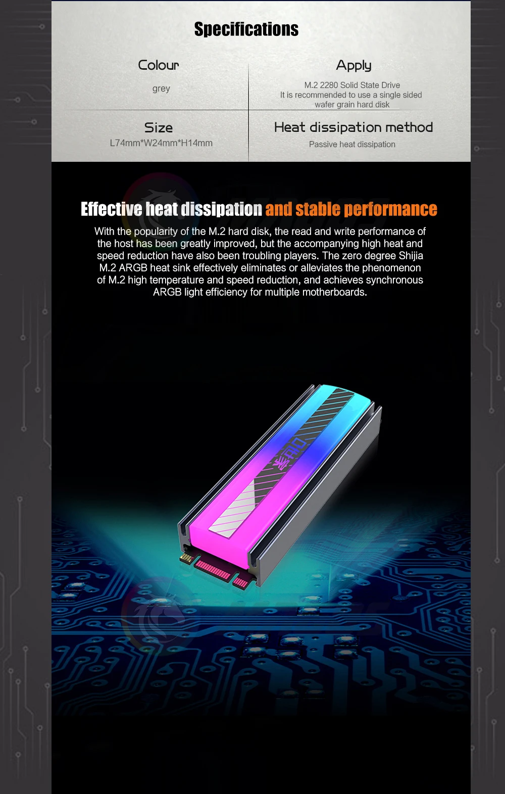 Dissipador SSD M2 NVME NGFF M.2 2280 Disipador de calor del radiador del disco duro de estado sólido Disipación de calor pasiva Refrigeración de aluminio