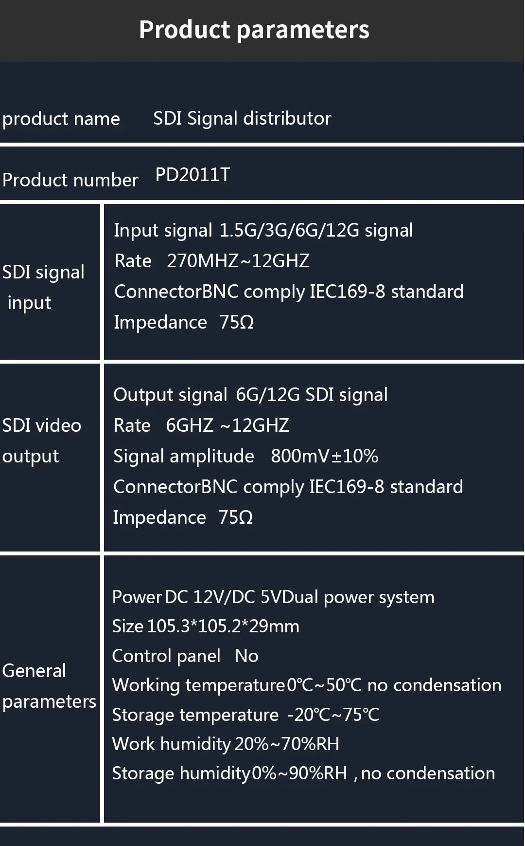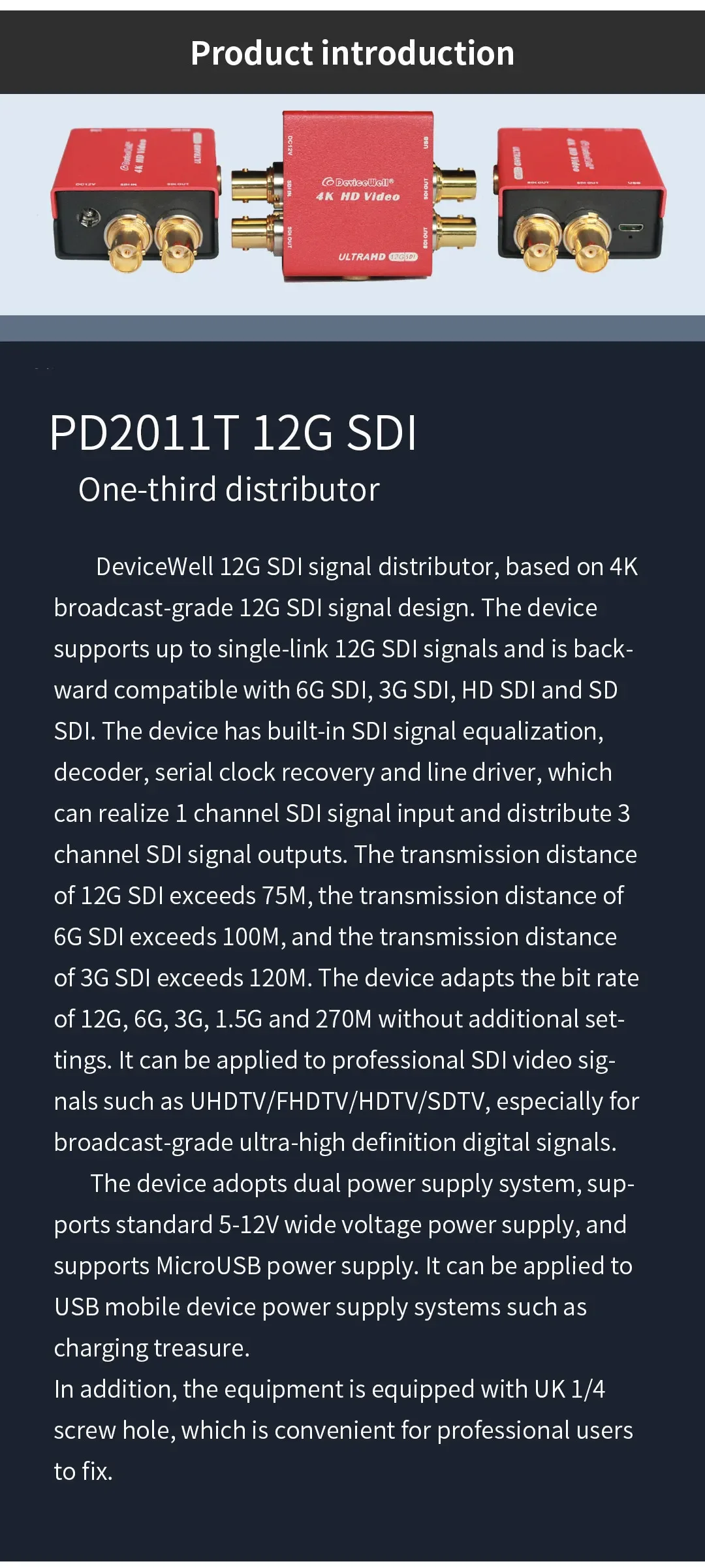 Nuevo producto PD2011T Mini 4K HD Video 12G SDI Distribuidor de señal