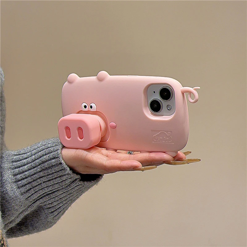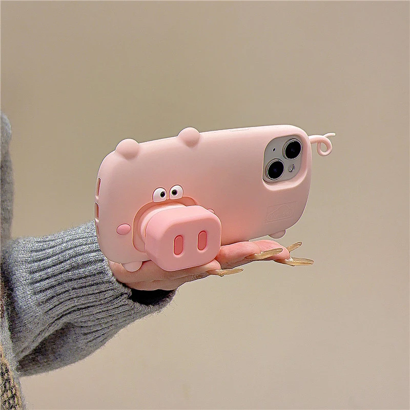 Funda con soporte plegable de cerdo rosa divertida y bonita para iPhone 16 Pro Max 15 13 14 funda trasera de teléfono de dibujos animados de silicona suave