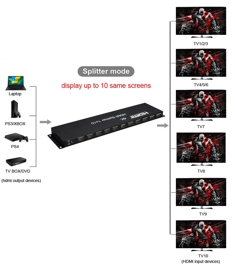 Comprar Divisor 4K HDMI 1x10 convertidor distribuidor de vídeo 1 en 10 salida pantalla múltiple compartir espejo para PS4 Cámara PC a Monitor de TV