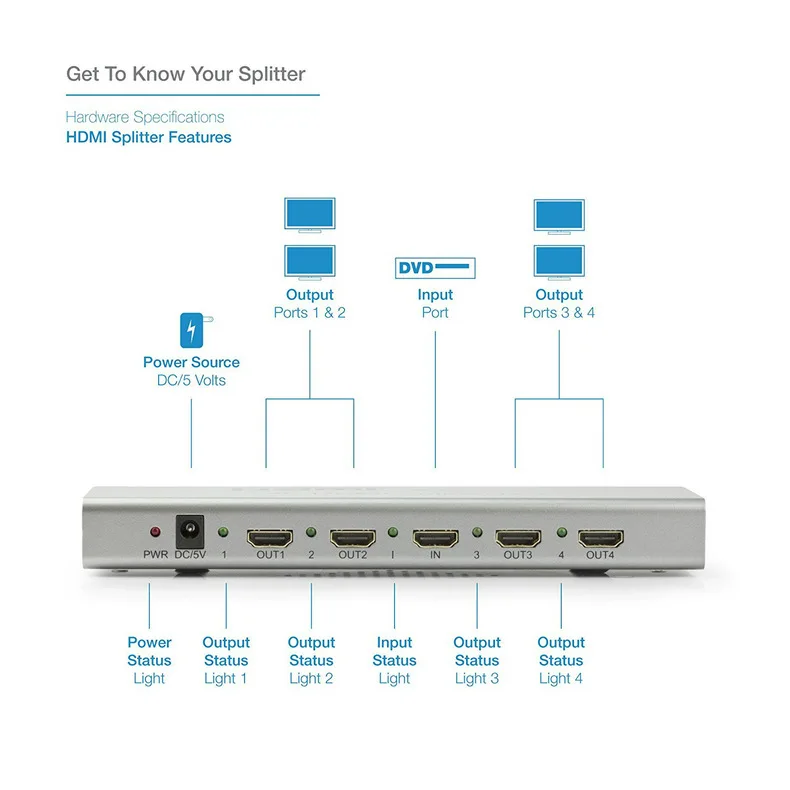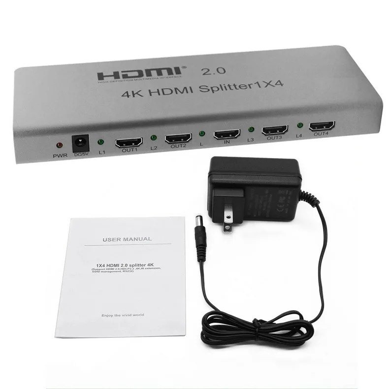 Comprar Divisor 4K HDR HDMI 2,0 1x2 1x4 1x8 4K 60Hz Distribuidor HDMI 1 en 4 salidas con HDR y HDMI CEC RS232 para PS5 PS4 Apple TV PC portátil