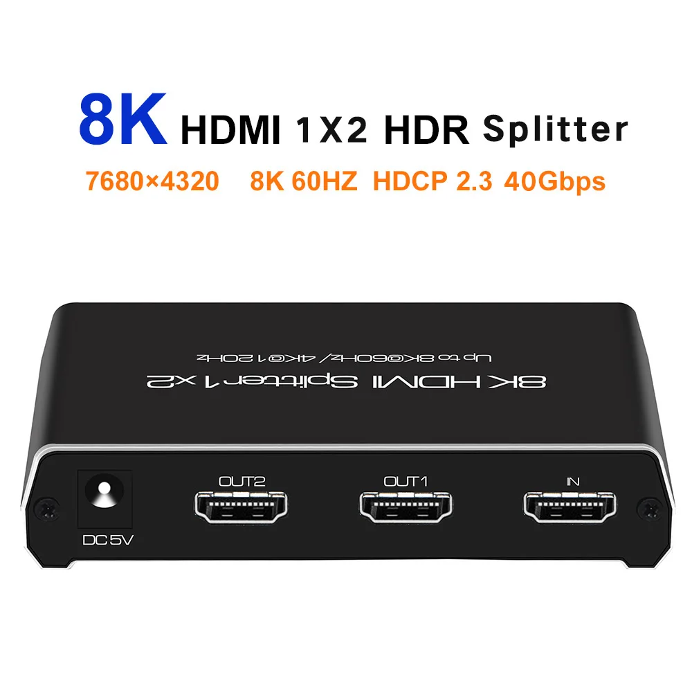 Comprar Divisor 8K HDMI 4k 120Hz 3D HDR 1x2 HDMI Splitter 1 en 2 Out Dual Display HDMI2.1 8k60hz Splitter adaptador para PS5 PS4 PC a TV