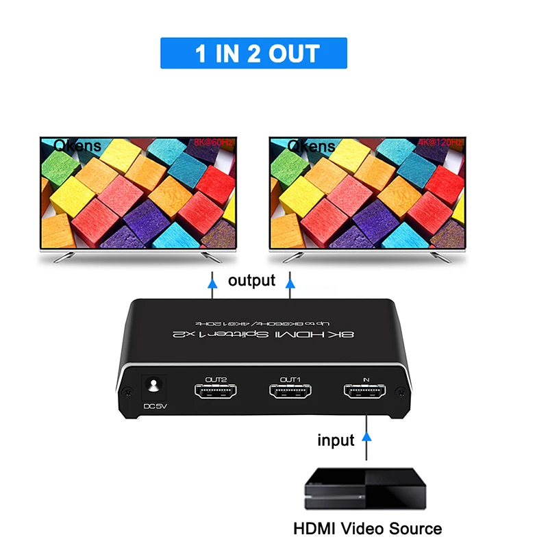 【HDMI 2,1 Spltter】HDMI 2,1 Splitter compatible con resolución Ultra HD 8K @ 60Hz/4K @ 120Hz / 3D / Full-HD 1080P.