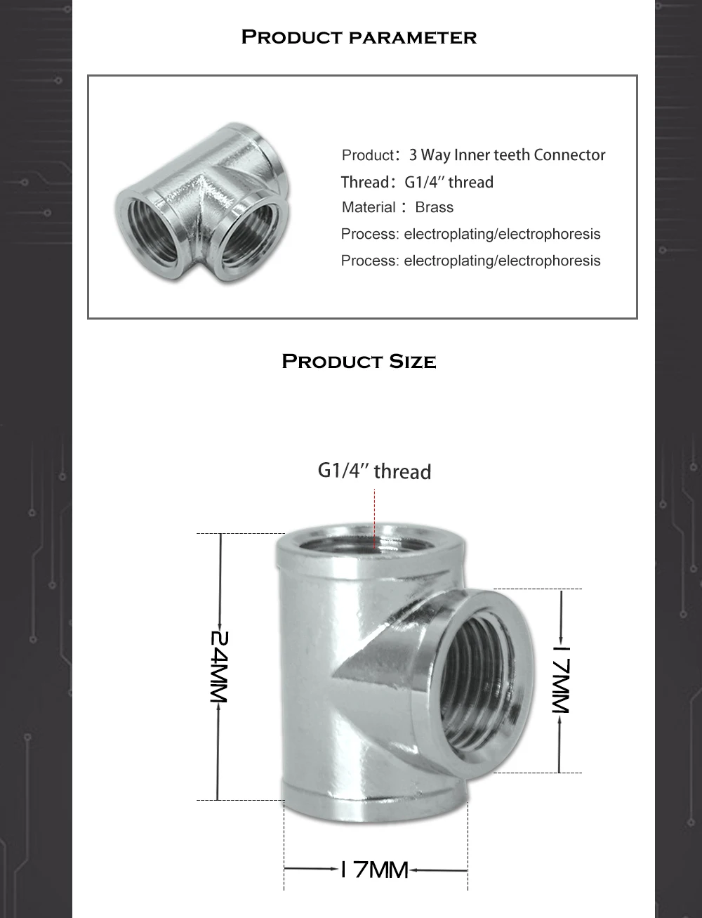 Divisor de agua en forma de T, accesorio hembra de 3 vías, rosca G1/4, Conector de trampa para tubería de manguera de ordenador, sistema de refrigeración por agua, 1 pieza