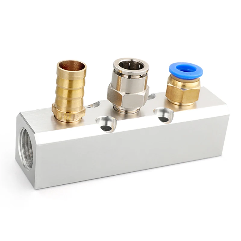 Thread Dia.: 1/4"PT 1/2 PTSpecification:Product Name:Manifold BlockWay Quantity: 2 3 4 5 6 7 8 9 10 WayThreaded Port Dia: 1/4 1/PTColor Teal: SilverMaterial : AluminumPackage: 1 x Manifold Block