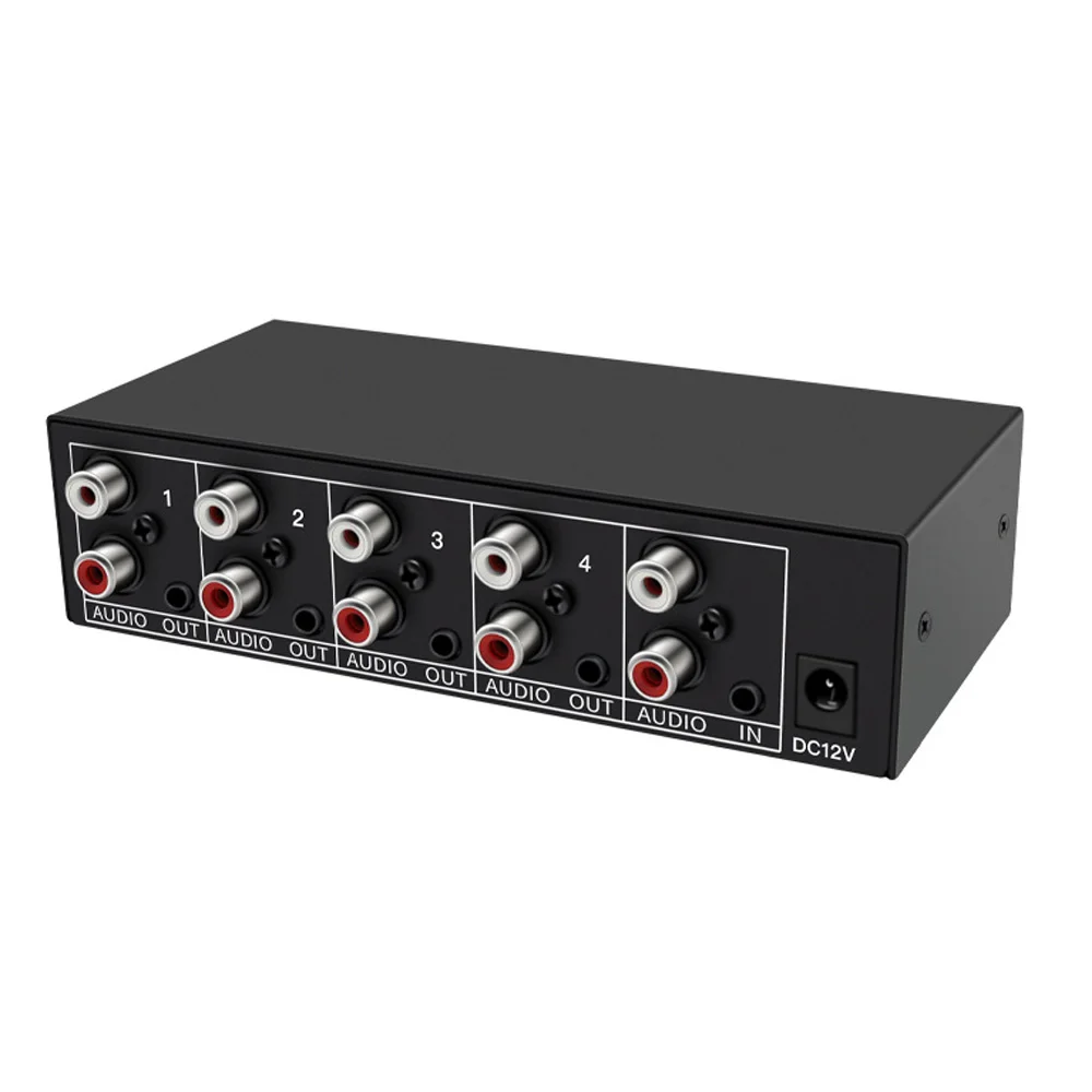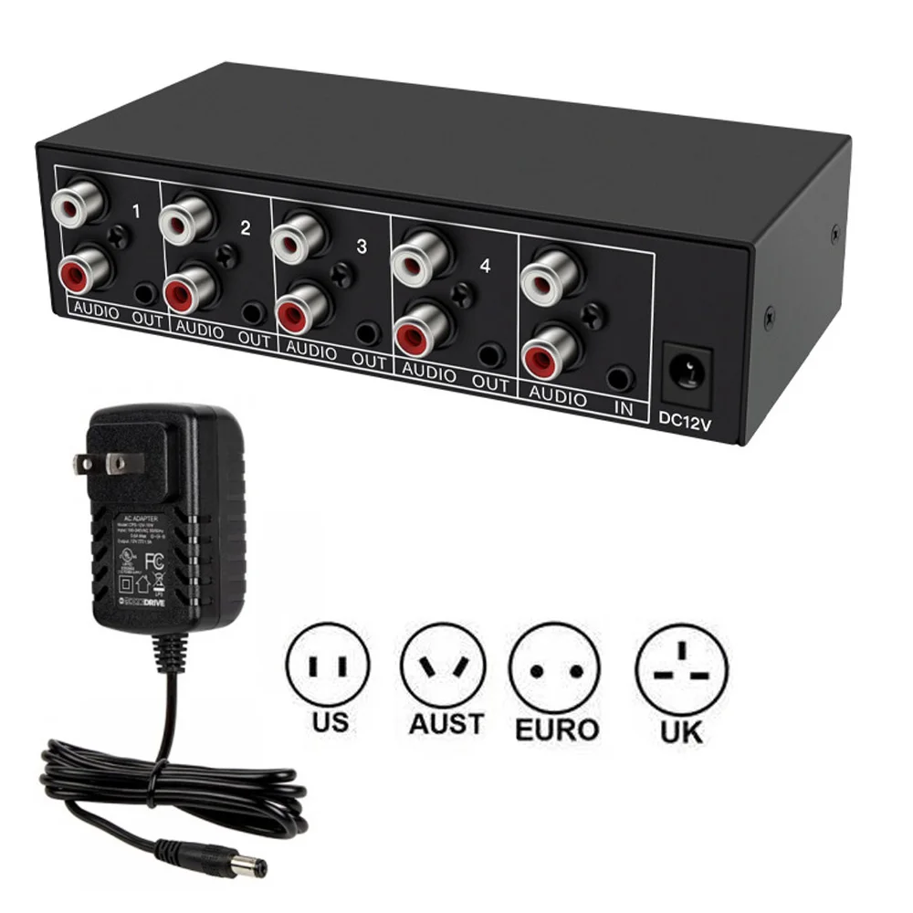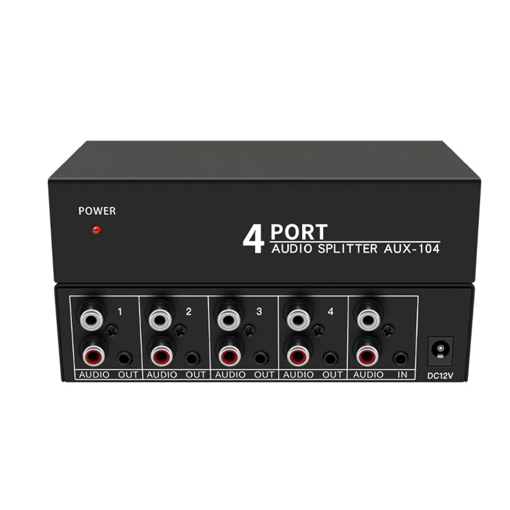 Comprar Divisor de Audio 1 en 4 salidas RCA L/R Aux estéreo divisor de Audio 1X4 distribuidor de Audio para PC DVD altavoz audio analógico splitte