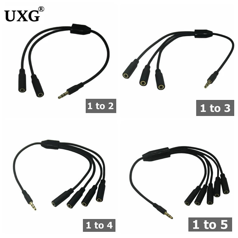 Comprar Divisor de Audio de 3,5mm, Cable de 3,5mm, conector hembra a macho de 1 a 2, 3, 4 y 5, adaptador auxiliar para iPhone, Samsung, reproductor de MP3 y auriculares