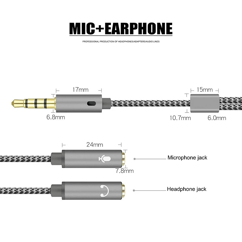 Divisor de Audio de 3,5mm, Cable de extensión para auriculares, conector de 3,5mm, 1 macho a 2 micrófonos hembra, divisor en Y, Cable auxiliar, adaptador divisor de auriculares