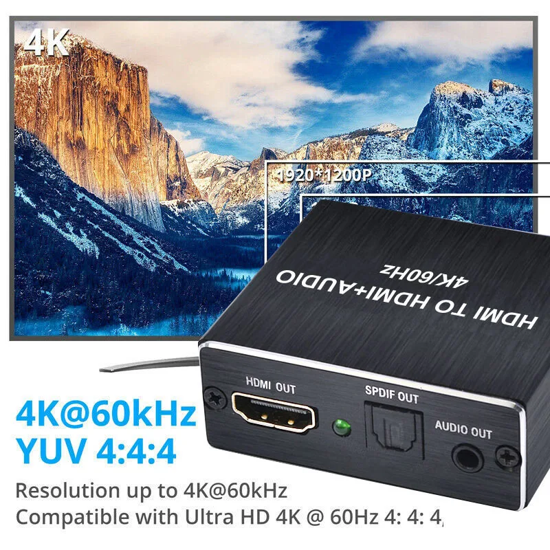 Comprar Divisor de Audio 4K 60Hz HDMI 2,0 5.1CH ARC Audio Extractor HDMI Video Converter para PS3 PS4 DVD PC a TV SPDIF amplificador altavoz