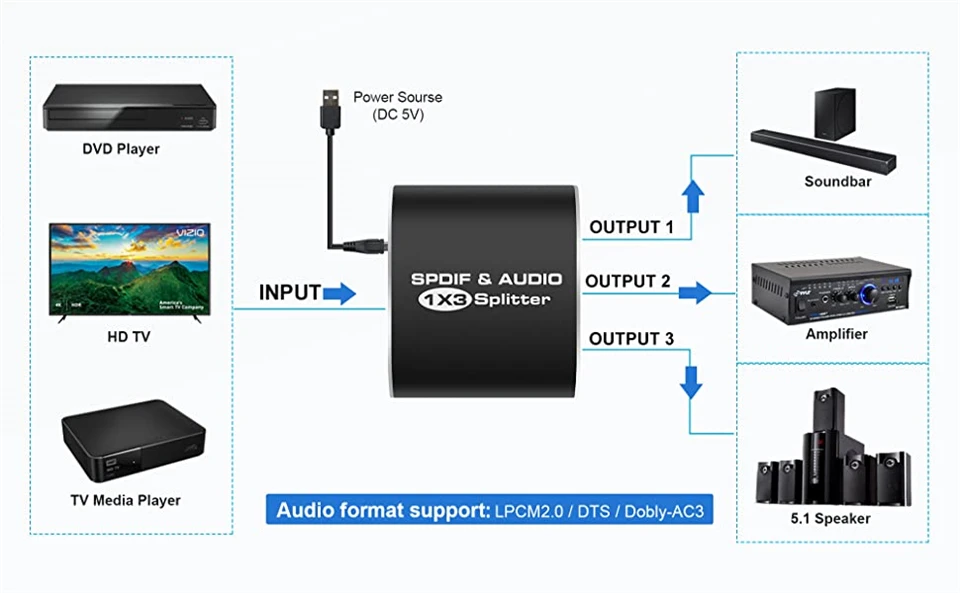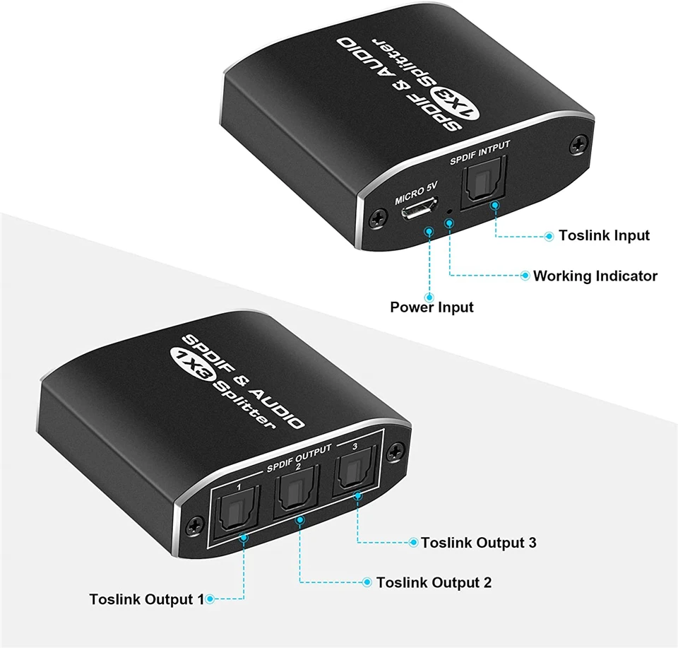 (1) El color negro es de 3 puertos, 1x3, divisor de audio digital Toslink SPDIF óptico, y 3 salidas 1 entrada, compatible con DTS AC3,DTS, 1 1 entrada y salida y LCPM.Características: