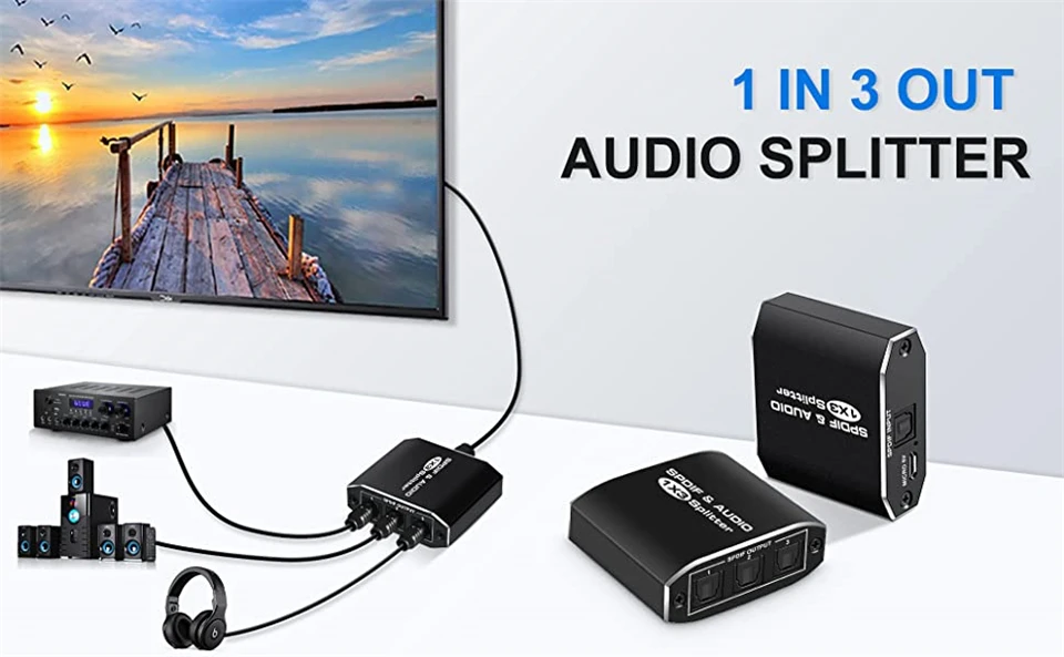 2. Permite que el puerto de salida del divisor se conecte al receptor de señal de fibra óptica (como un amplificador, cine en casa, etc.) mediante el cable óptico.